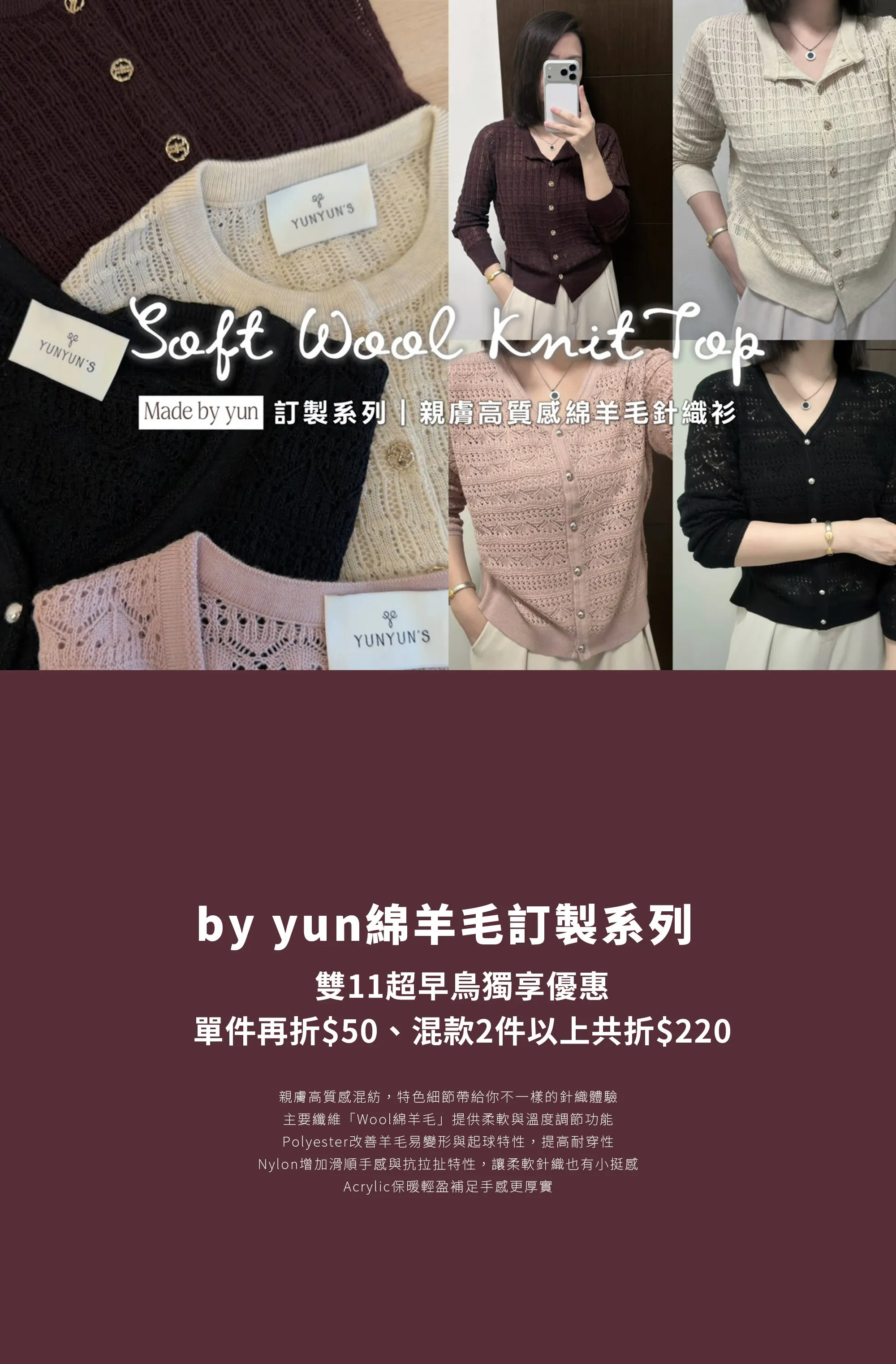 柔粉|YUN獨家訂製銀釦V領 綿羊毛親膚保暖針織衫