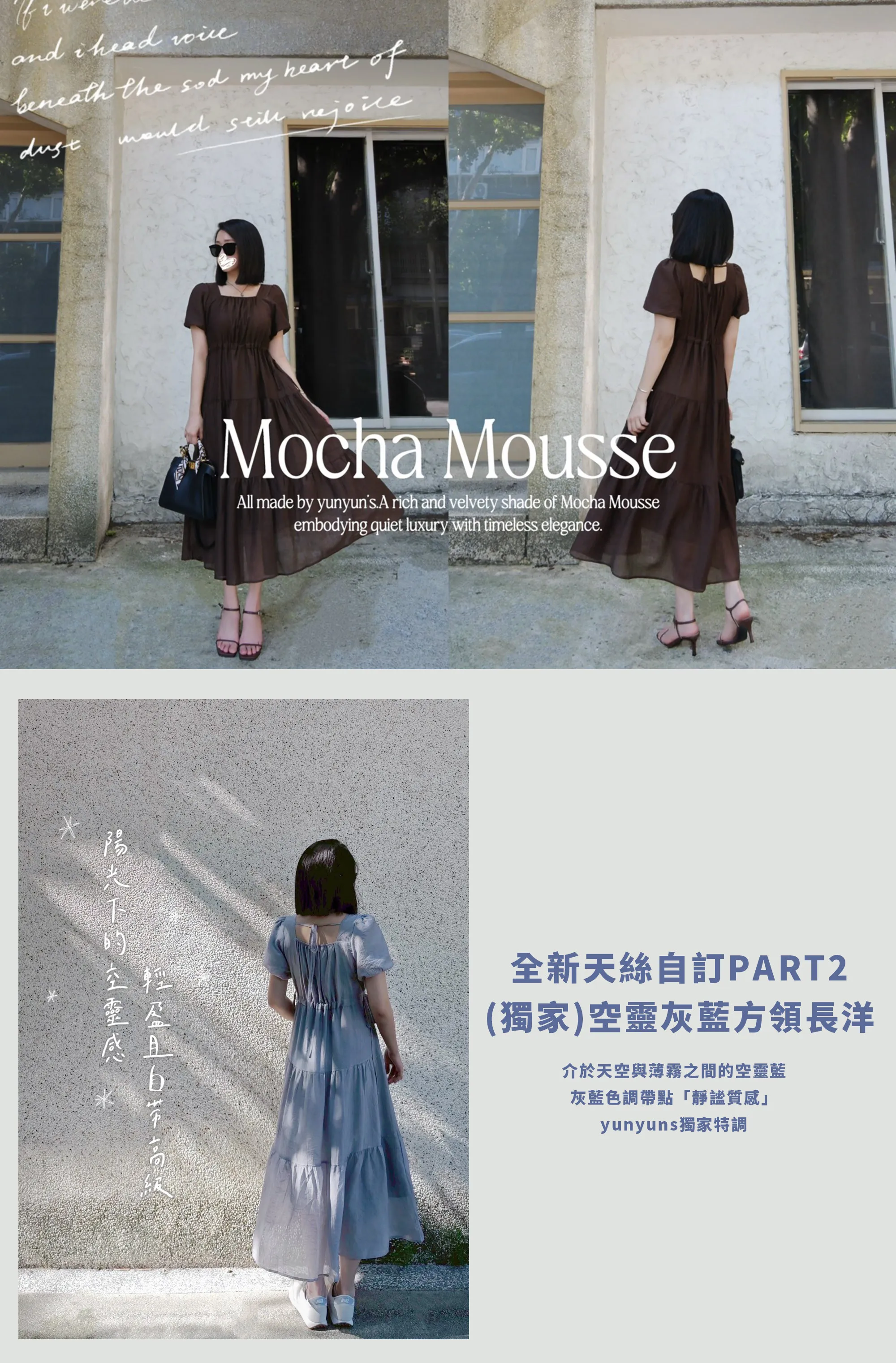 【預計10月第二週開始出貨】摩卡慕斯|YUN獨家天絲秋色簡約方領長洋