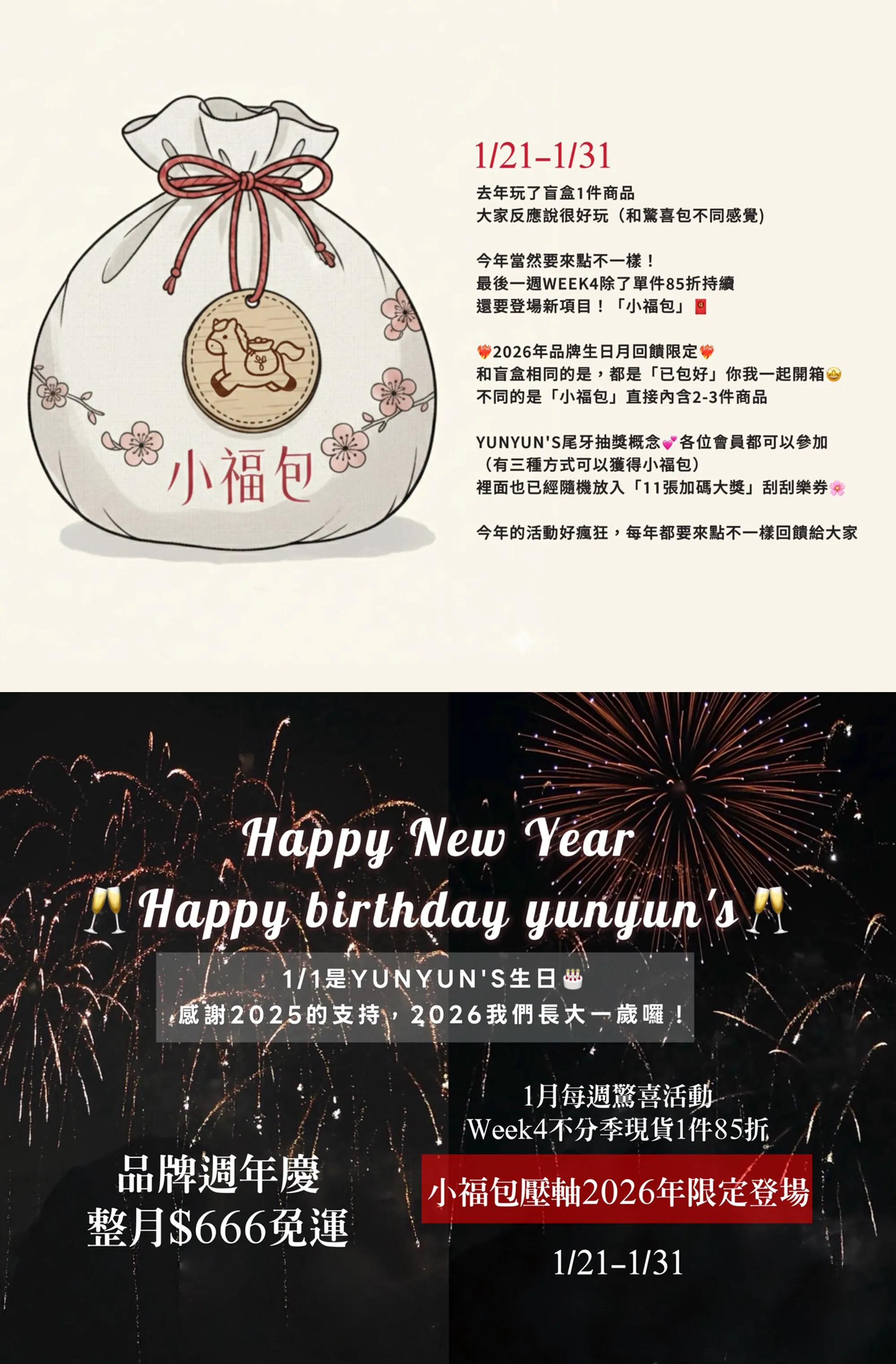 2026 Happy New Year:過年公告過年開始時間為2/16,12/31開始的預購商品都[會年前抵達]過年期間2/15~2/22[出貨部門]有彈性出貨加班[客服部門]正常過年休假,大家還是可以過年正常逛,現貨訂單都會出貨喔!● 郵局:過年期間(休息)、建議過年期間仍想收貨選[超商]● 超商:過年期間皆有配送,約2日左右到(實際以官方通知為主)