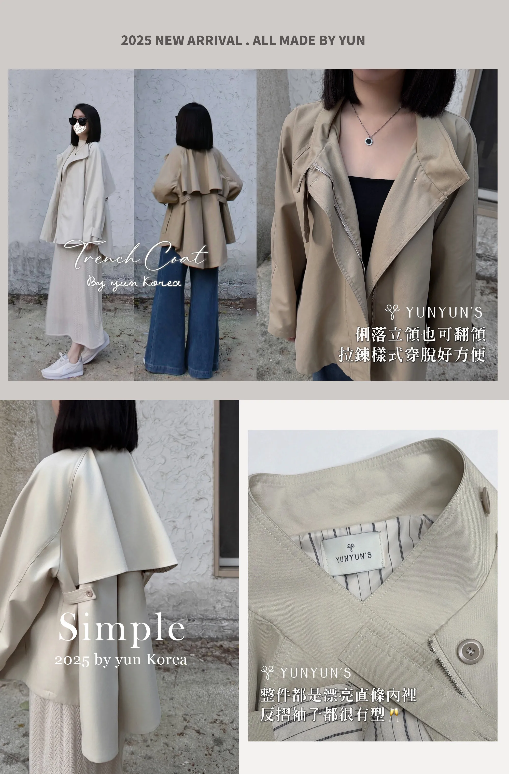 淺杏|YUN內裏拼接高工藝美背中版拉鍊風衣
