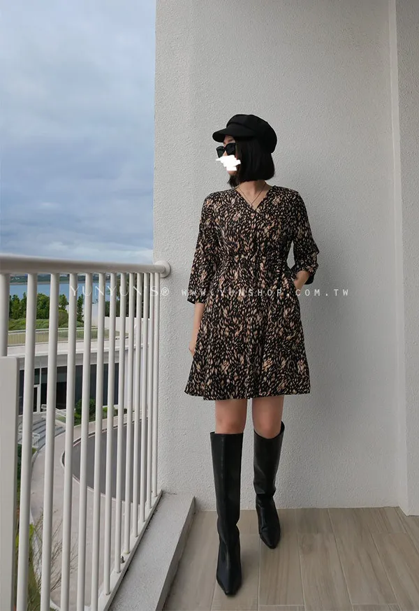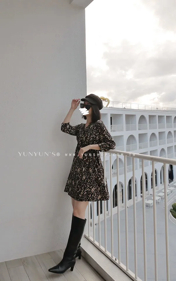 亮麗黑|YUN'S 特殊刷色渲染感豹紋短洋