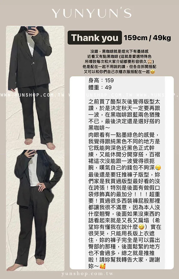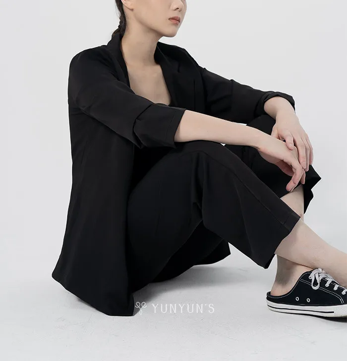 經典黑|YUN經典單釦後開岔極簡套裝(無拆售)