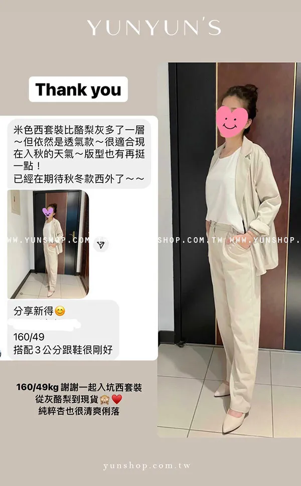 ・成套販售(西外+西褲)沒有拆售、沒有分尺碼、沒有墊肩