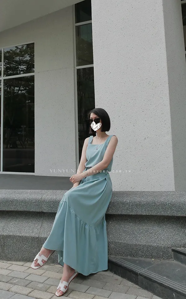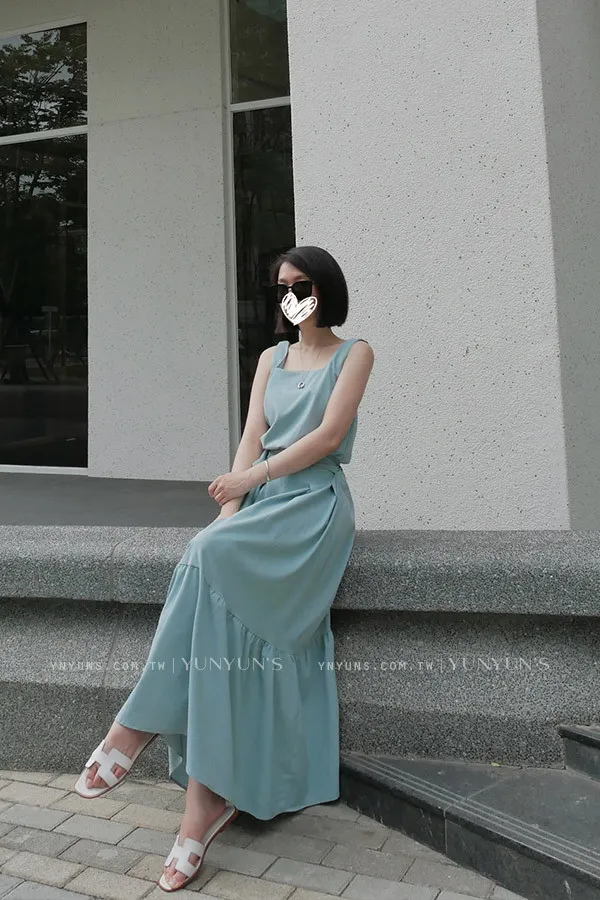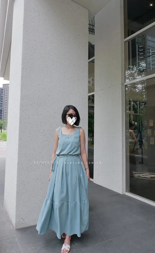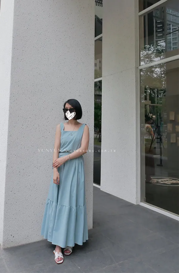 ・下擺有鬆緊帶(不會勒)、方領樣式