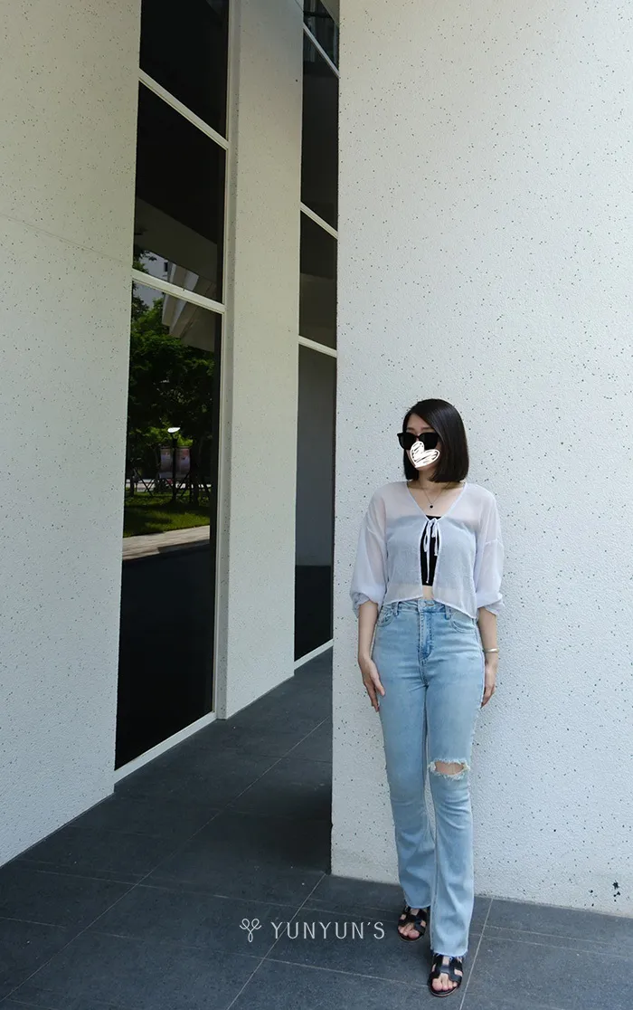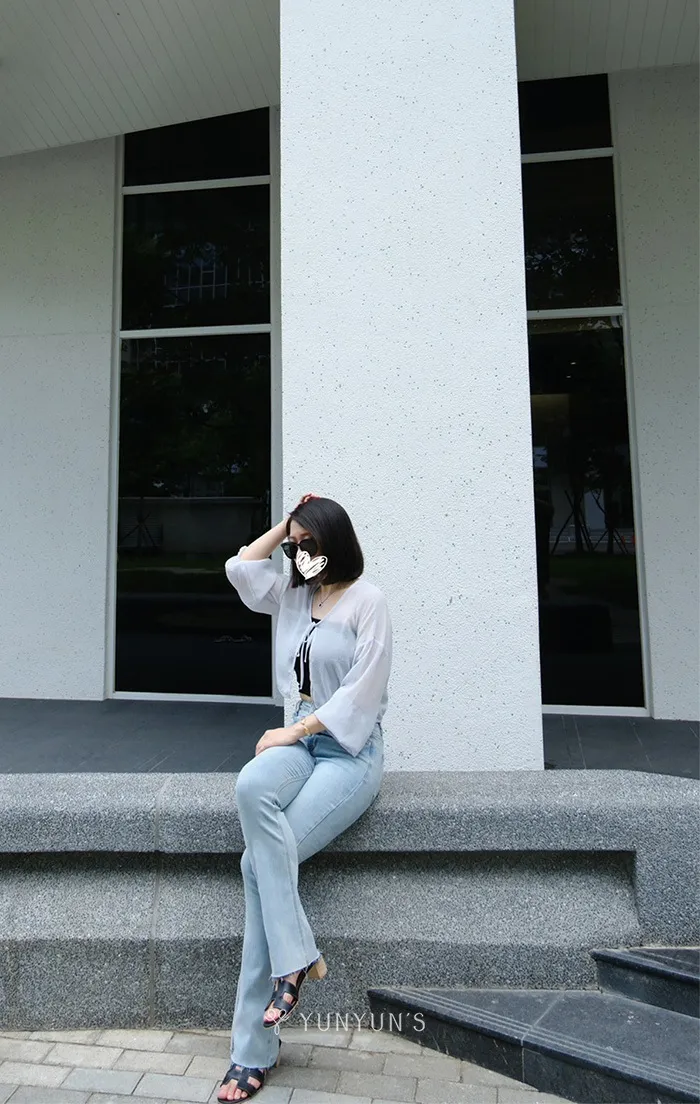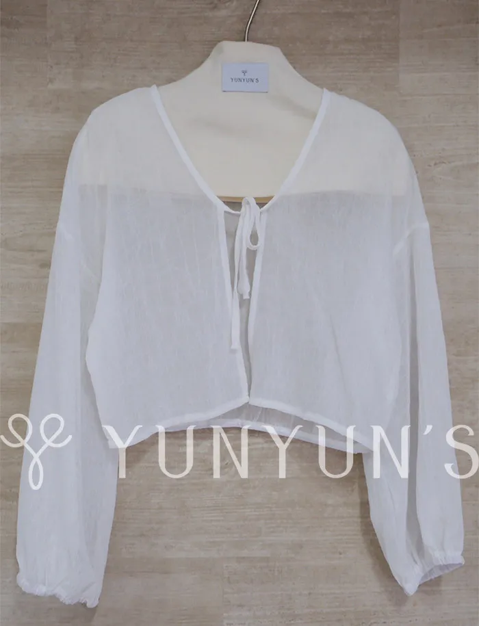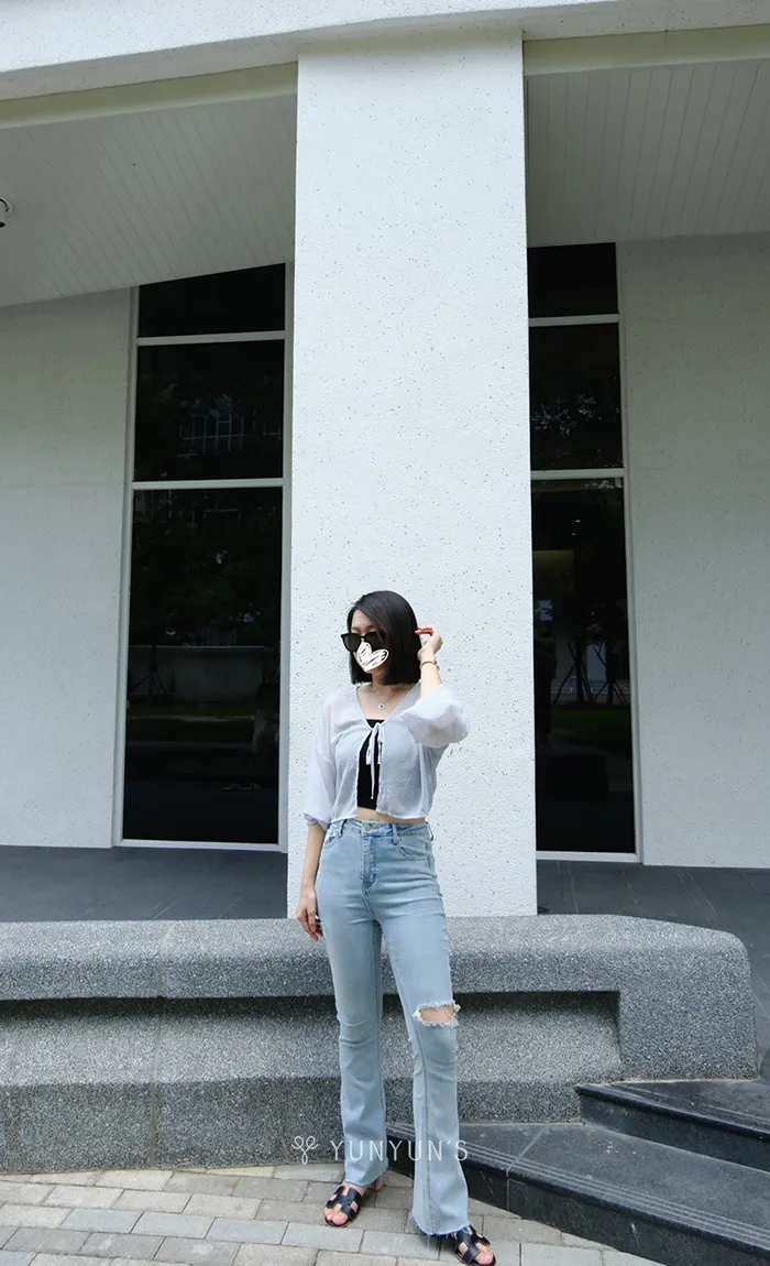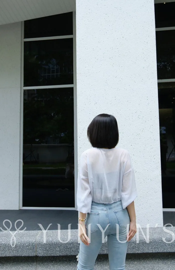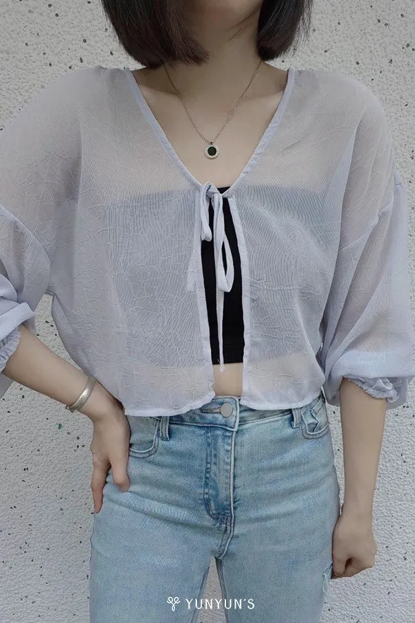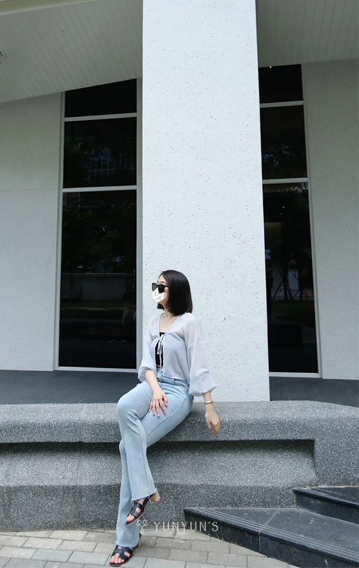 ・袖口鬆緊我超級愛,拉手袖起來很方便,透透罩衫隨便丟包包也不占位置也不皺