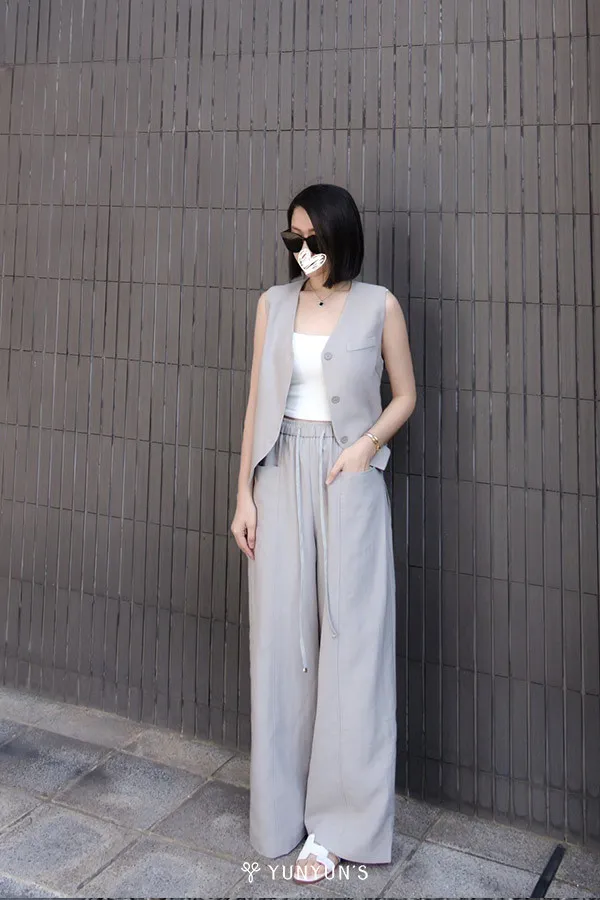 (冷灰)時髦休閒感西裝背心套裝