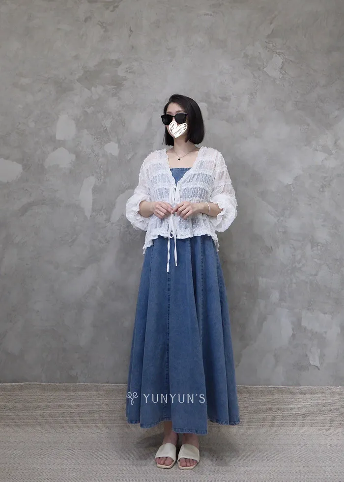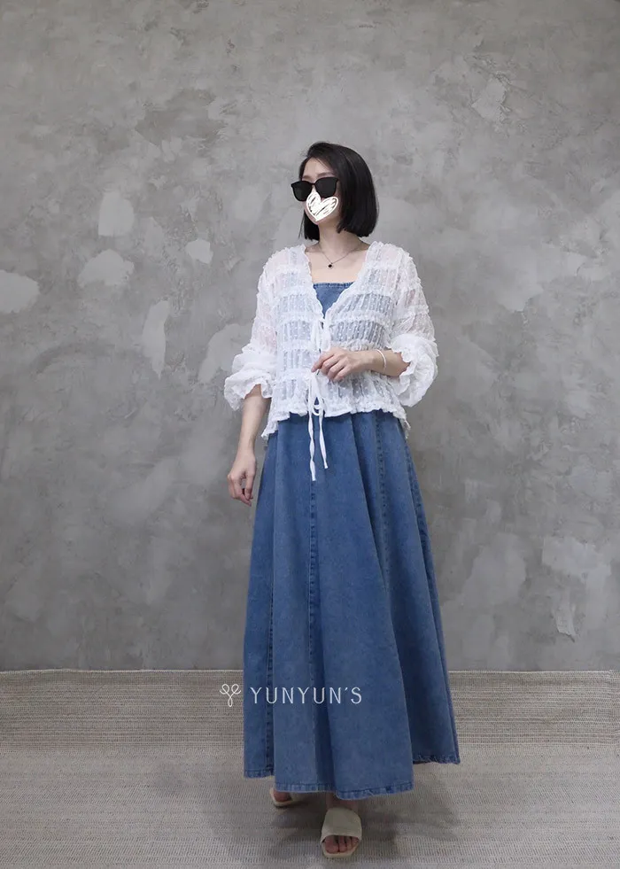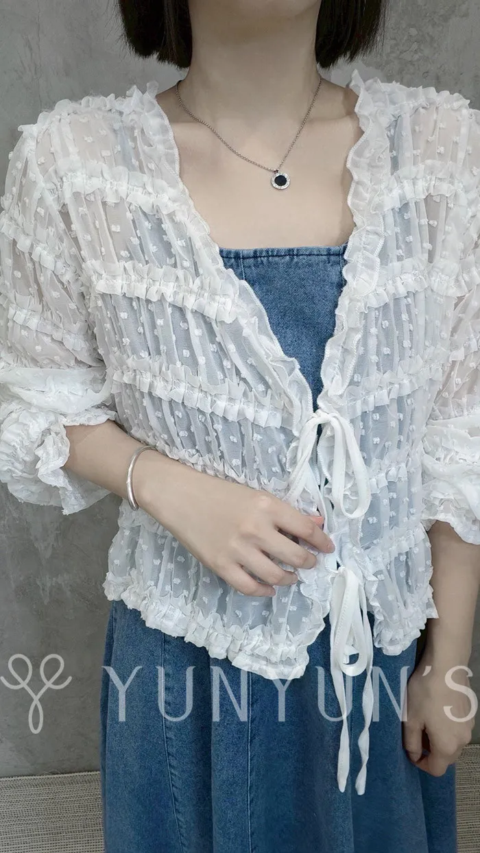 ・立體的拼接設計穿起來很有層次感、綁帶外套罩衫適合配在細肩帶上衣或洋裝外面,袖口是鬆緊