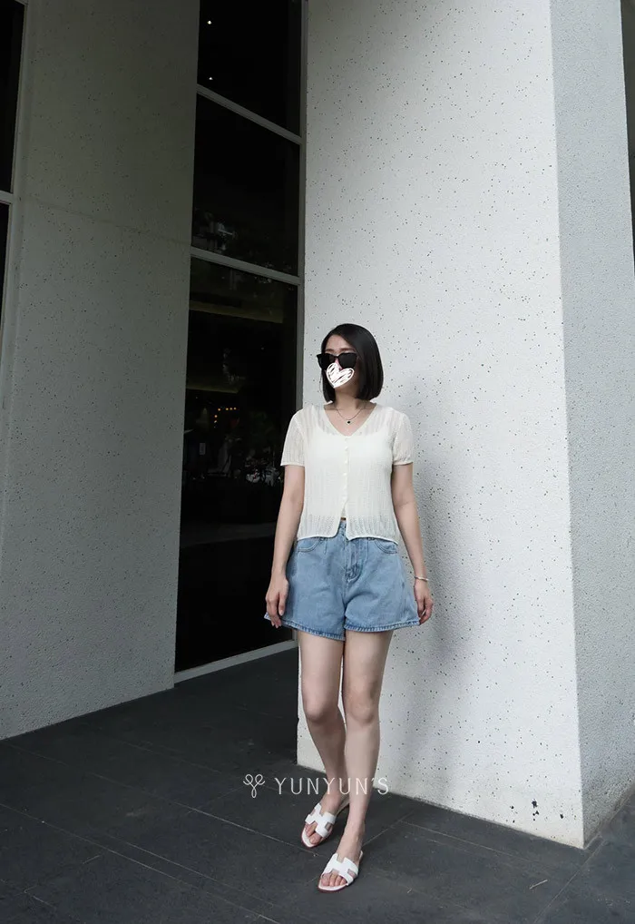 ・正面釦子都可以打開,不屬於貼身類型,穿起來YUN不貼手臂,很輕薄透氣不易皺