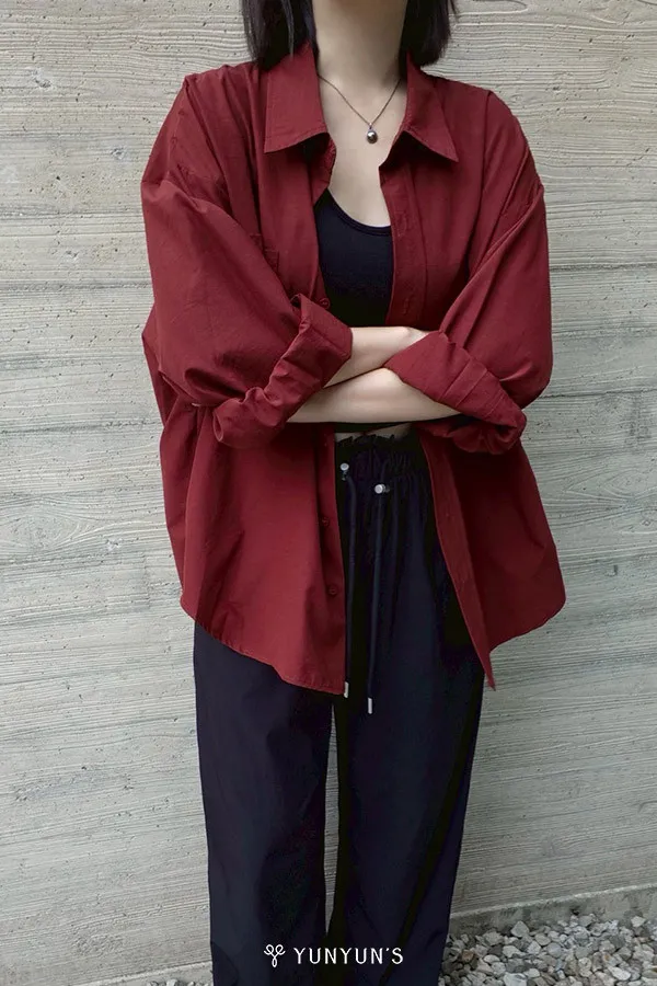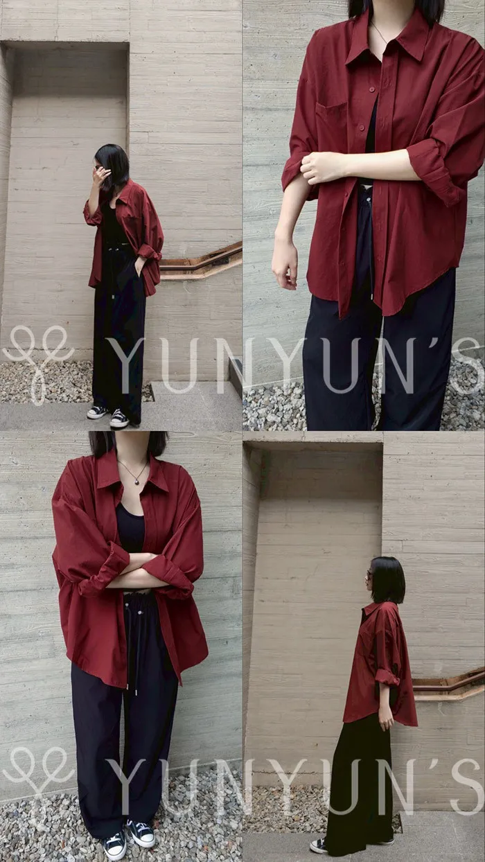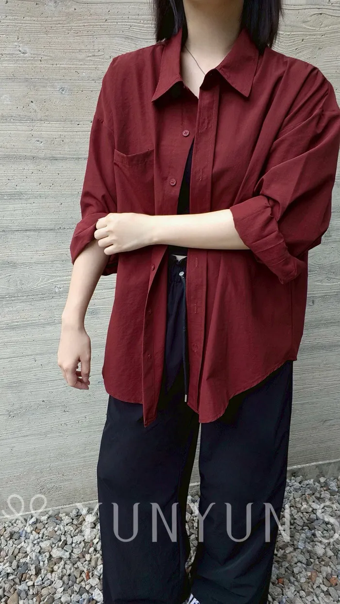 (紅)顯白必收夏季休閒系寬鬆襯衫