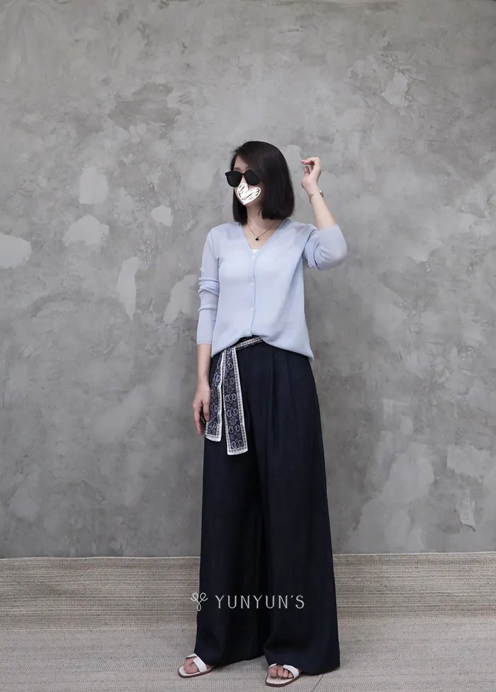 不是牛仔的柔軟西裝寬褲SML/附綁帶