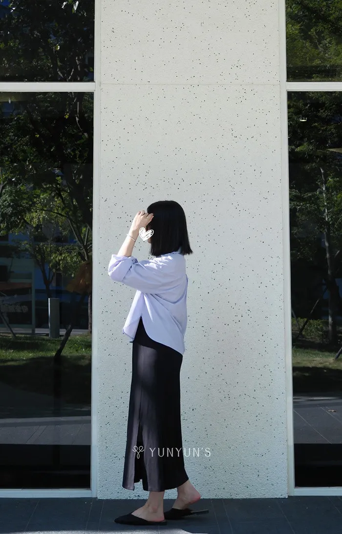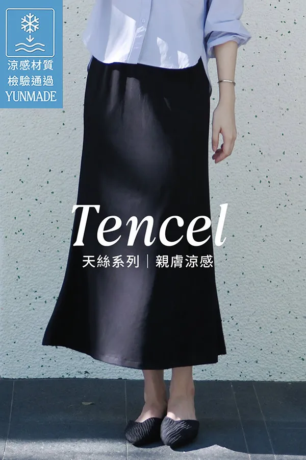 黑|YUN獨家涼感天絲開岔無塵長裙