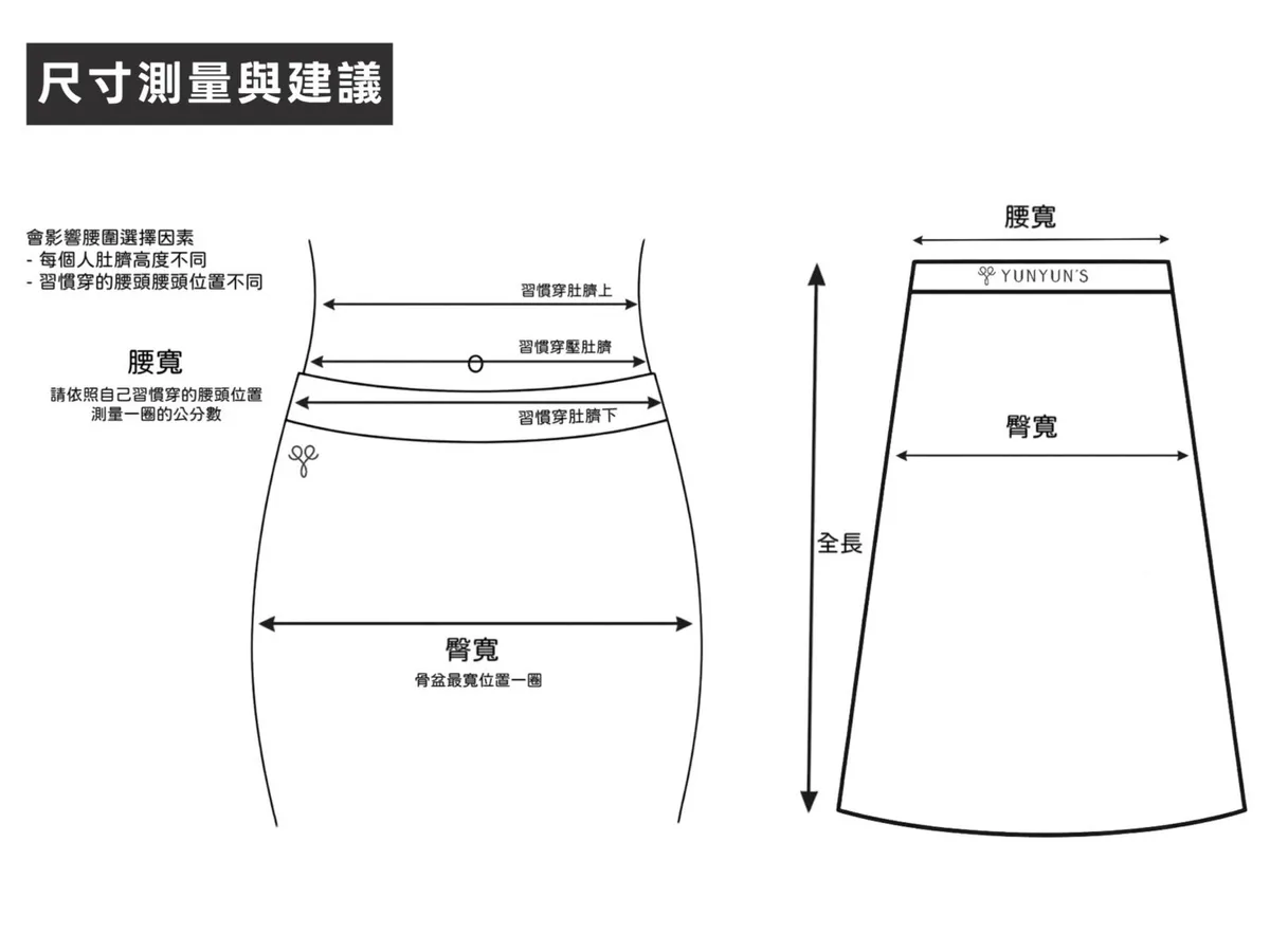 *腰圍:可直接以自己平常習慣穿下身類位置一圈測量