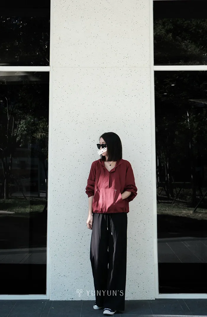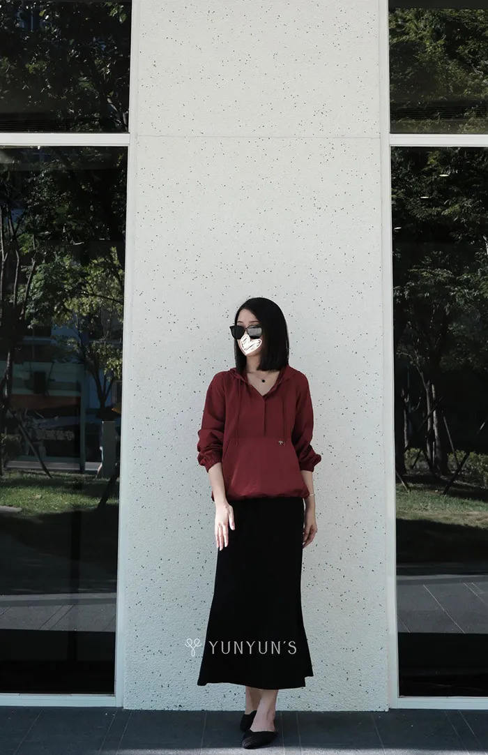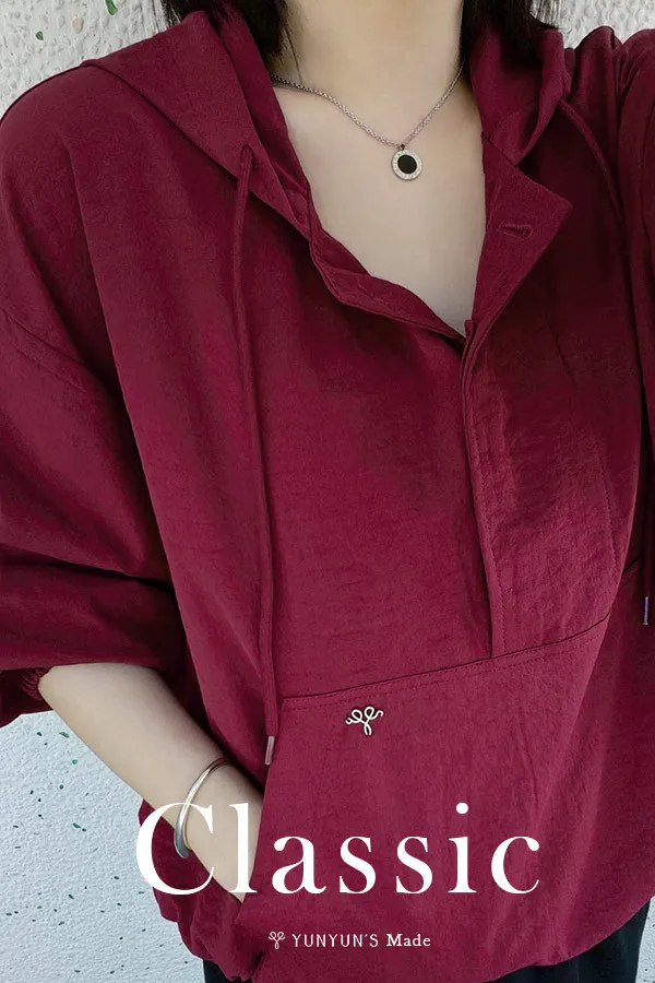 YUN莓果紅logo銀標連帽休閒衫