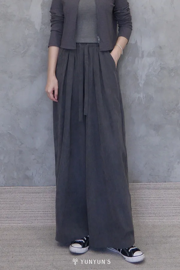 ・腰圍全鬆緊,正面有腰帶、兩側有口袋、正面有漂亮打摺,修飾臀腿!