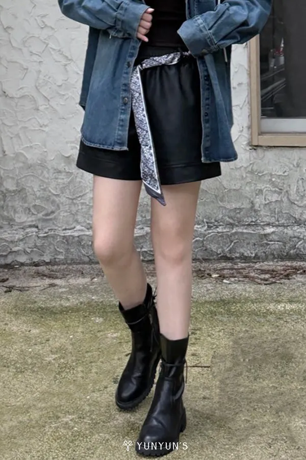 2025全新修飾臀腿親膚內裡短皮褲/附皮帶