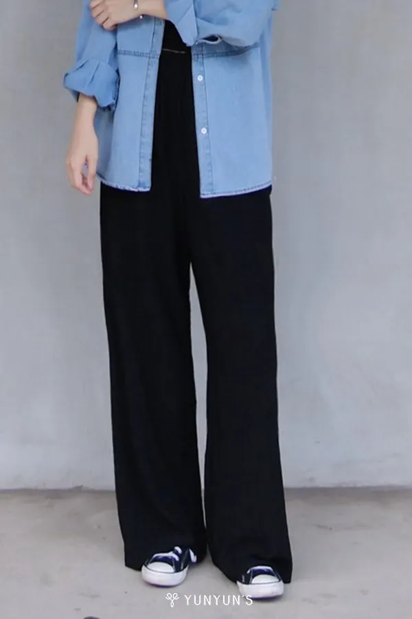 (黑)可剪!抗皺舒適休閒抽繩長褲