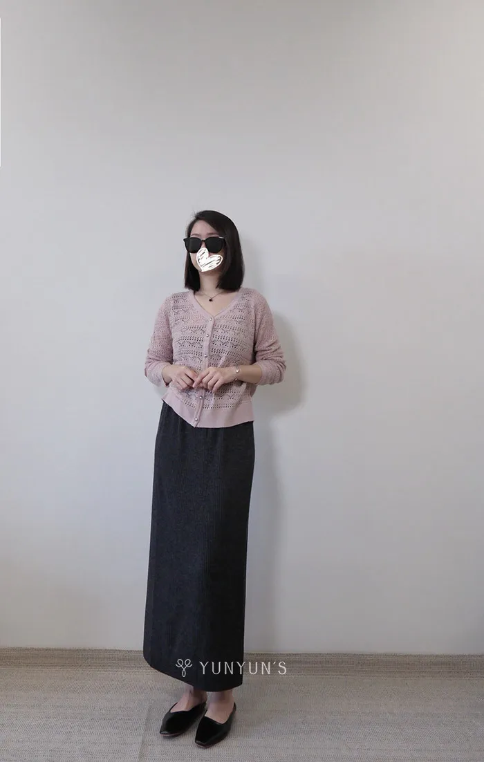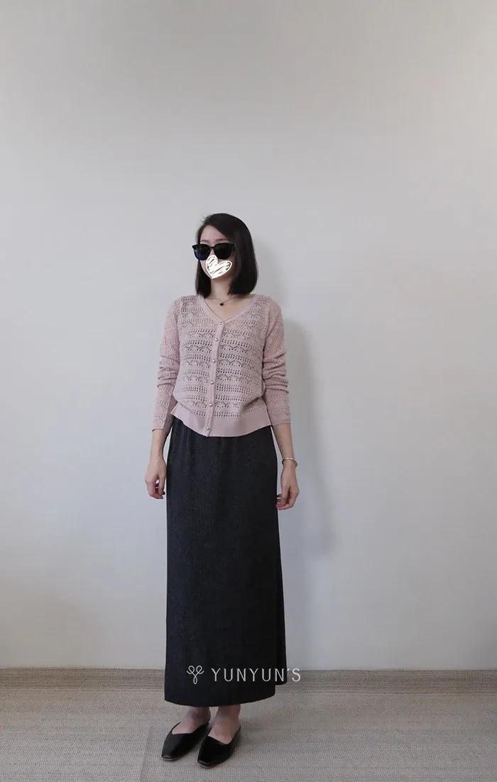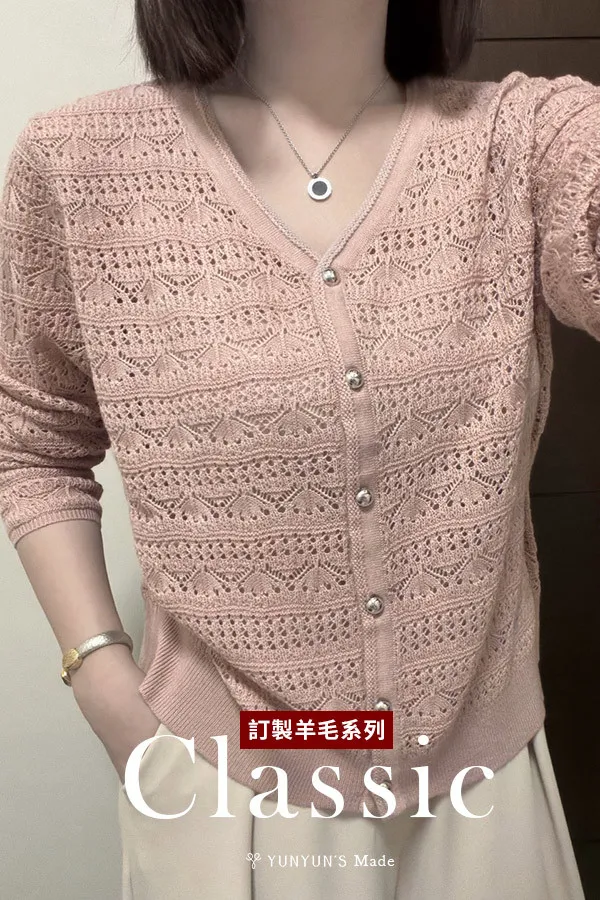 柔粉|YUN獨家訂製銀釦V領 綿羊毛親膚保暖針織衫