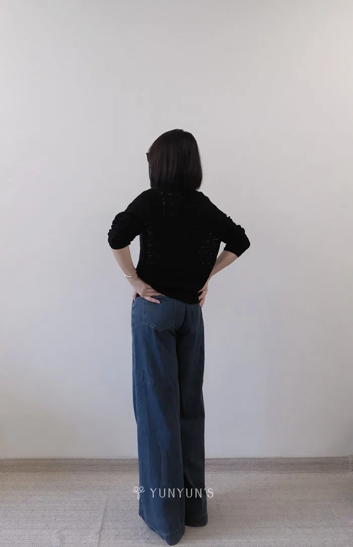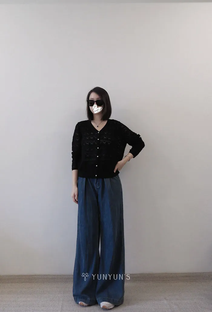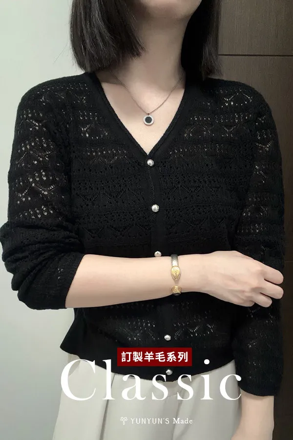 黑|YUN獨家訂製銀釦V領 綿羊毛親膚保暖針織衫
