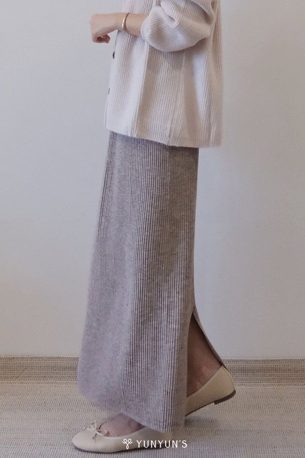 (黑)可穿XL都舒適的親膚抗皺後開岔針織裙