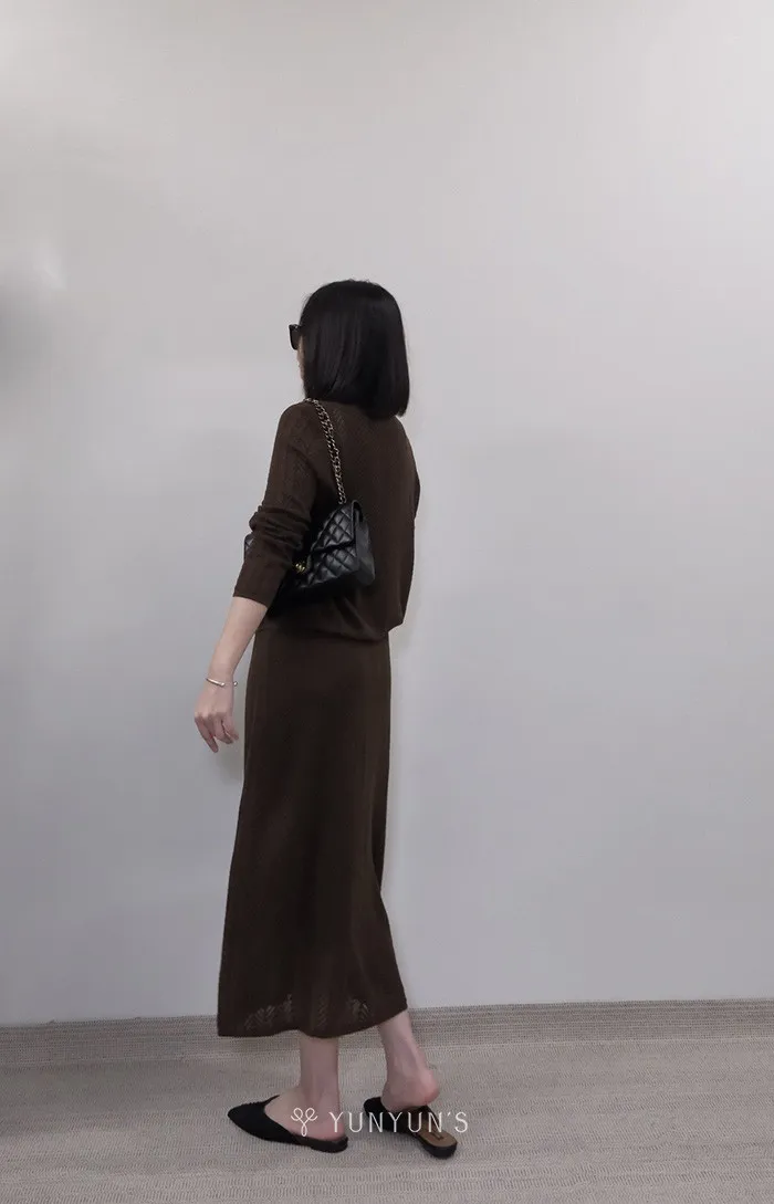 摩卡咖|YUN超細羊毛溫柔系針織衫+舒適散裙/可拆買