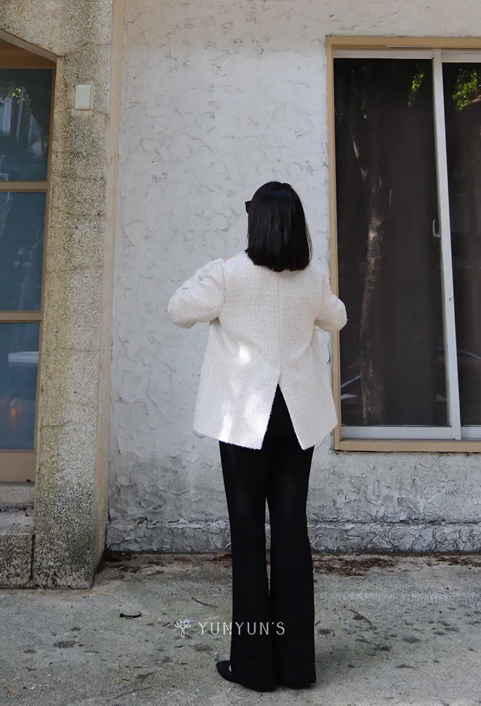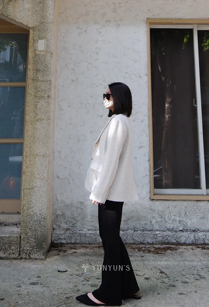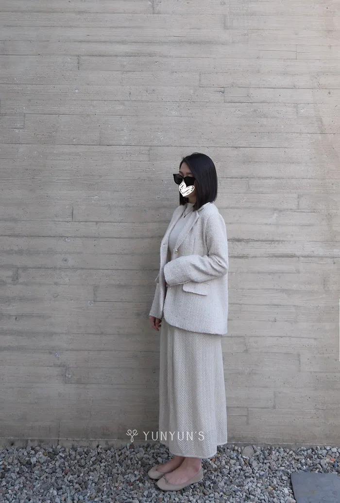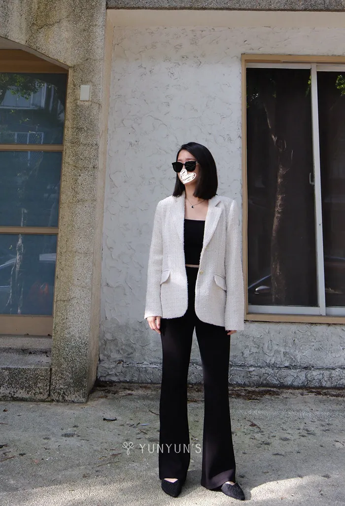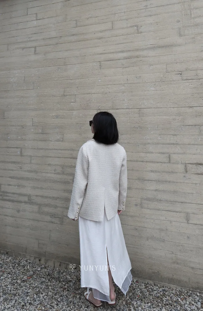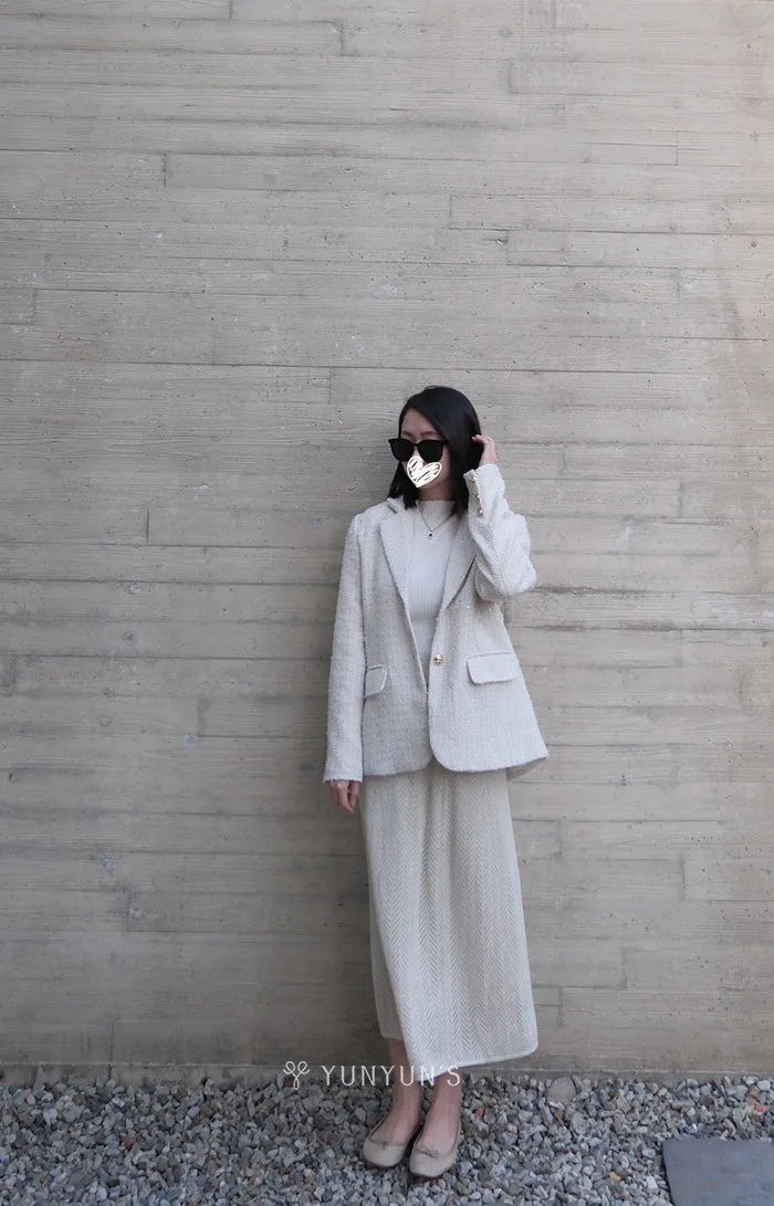 ・無墊肩,有挺度、整件有內裡、兩側有口袋、後開岔、釦子非常漂亮