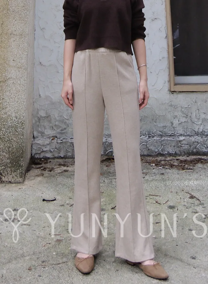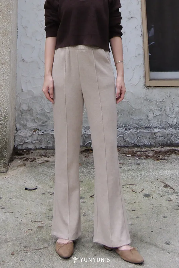 (奶茶)絨絨感中車線鬆緊長褲