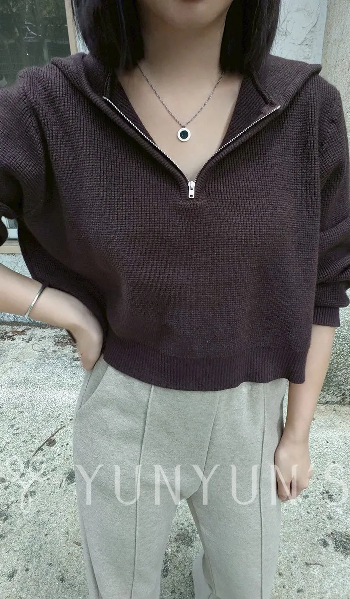 (咖)親膚連帽針織衫