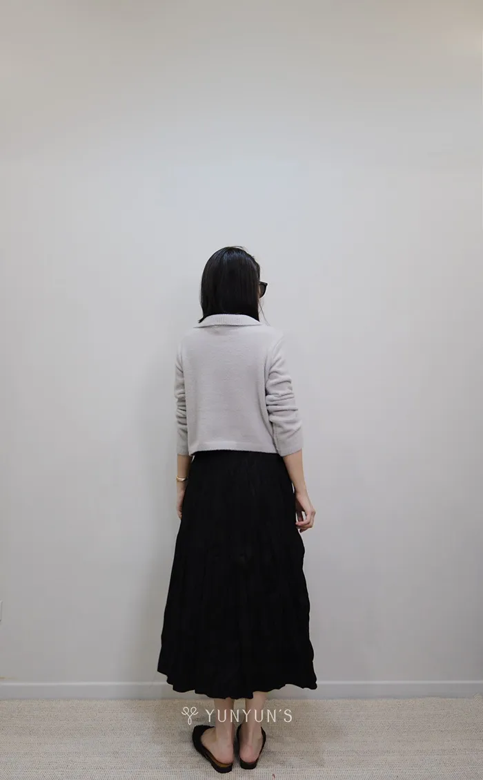 (黑)升級有口袋皺皺感親膚長裙