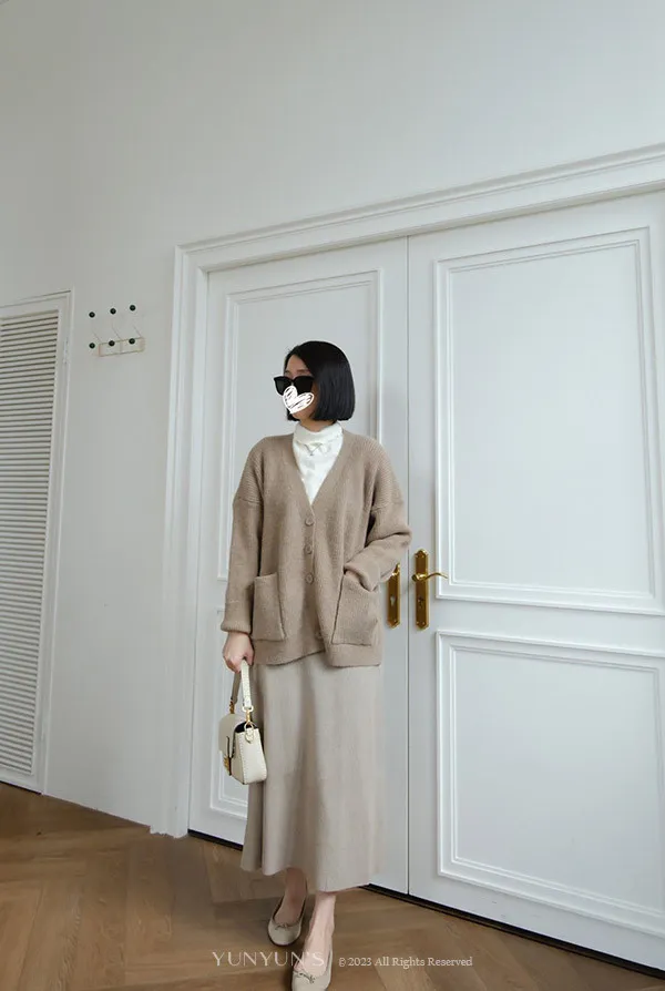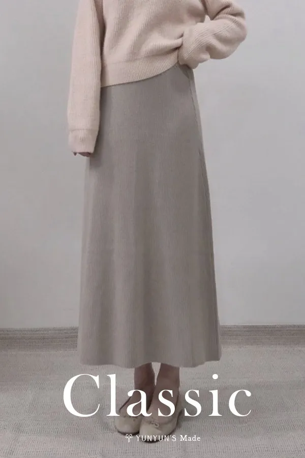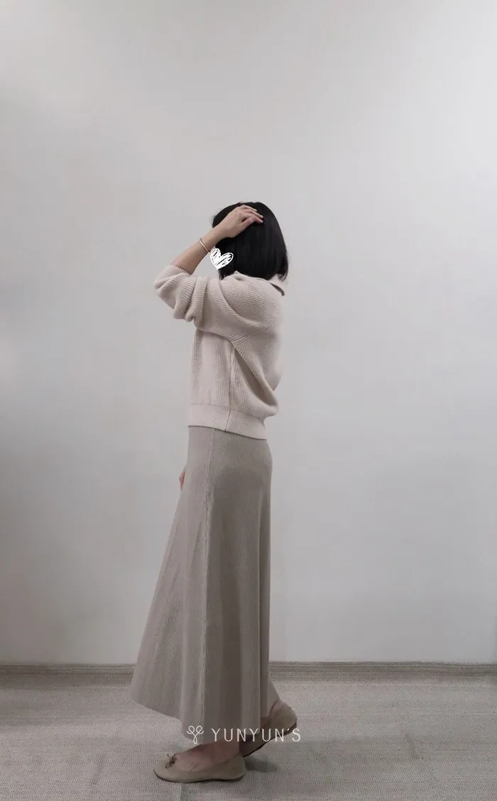 灰可可|YUN logo銀標臀寬修修磅數感針織長裙