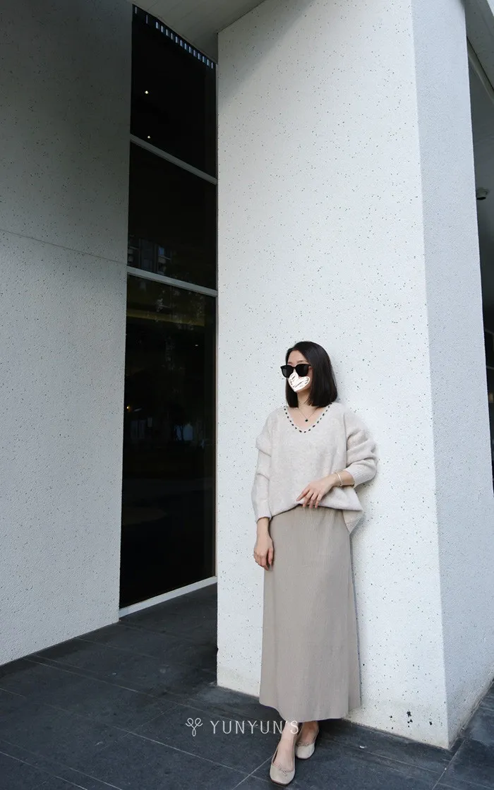 ・材質:有磅數感的針織長裙.不臭不刺.彈性好
