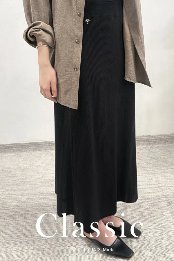 黑|YUN logo銀標臀寬修修磅數感針織長裙