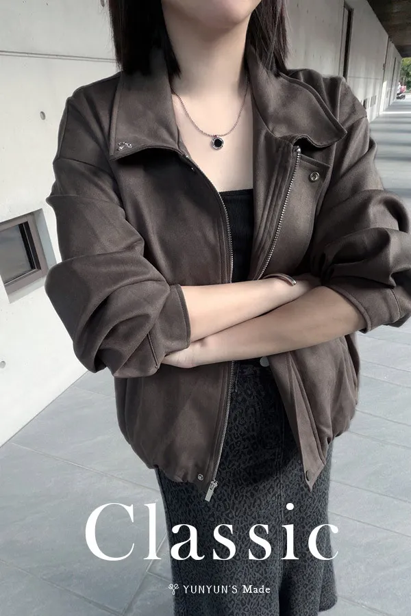 深咖|YUN logo銀標俐落雲朵感柔無臭軟麂皮外套