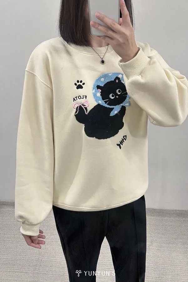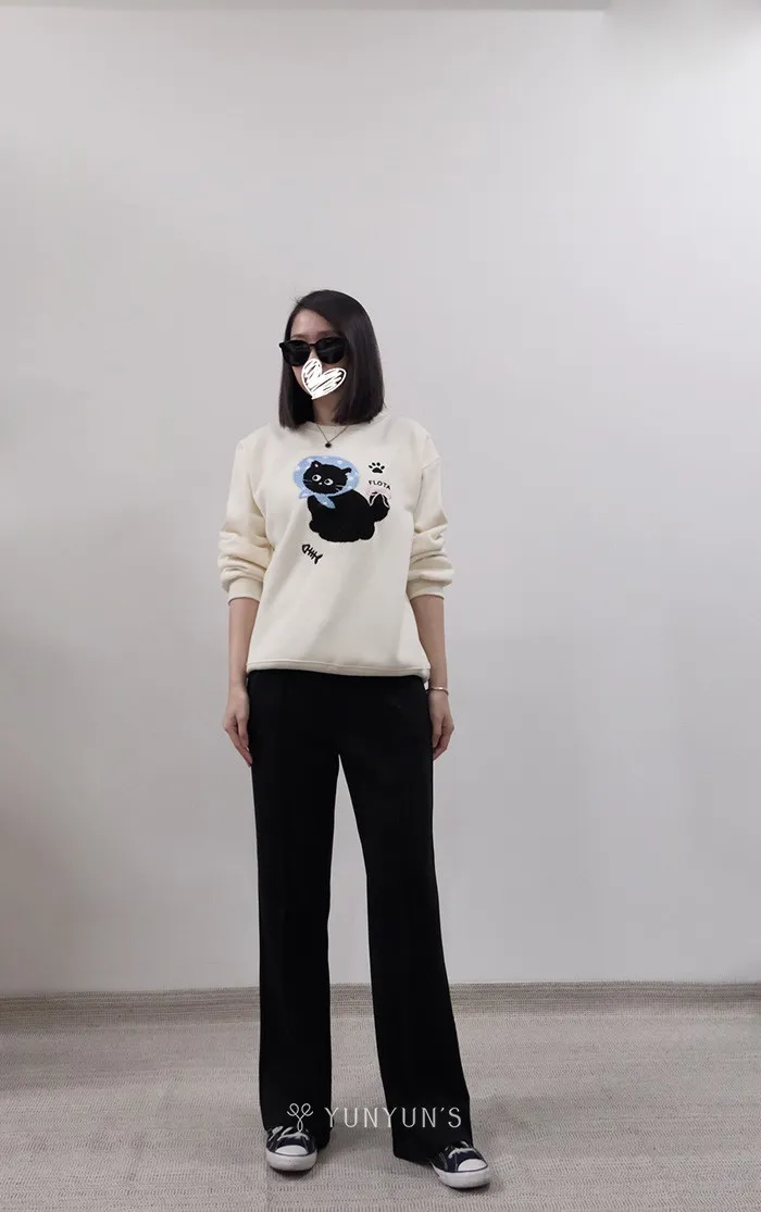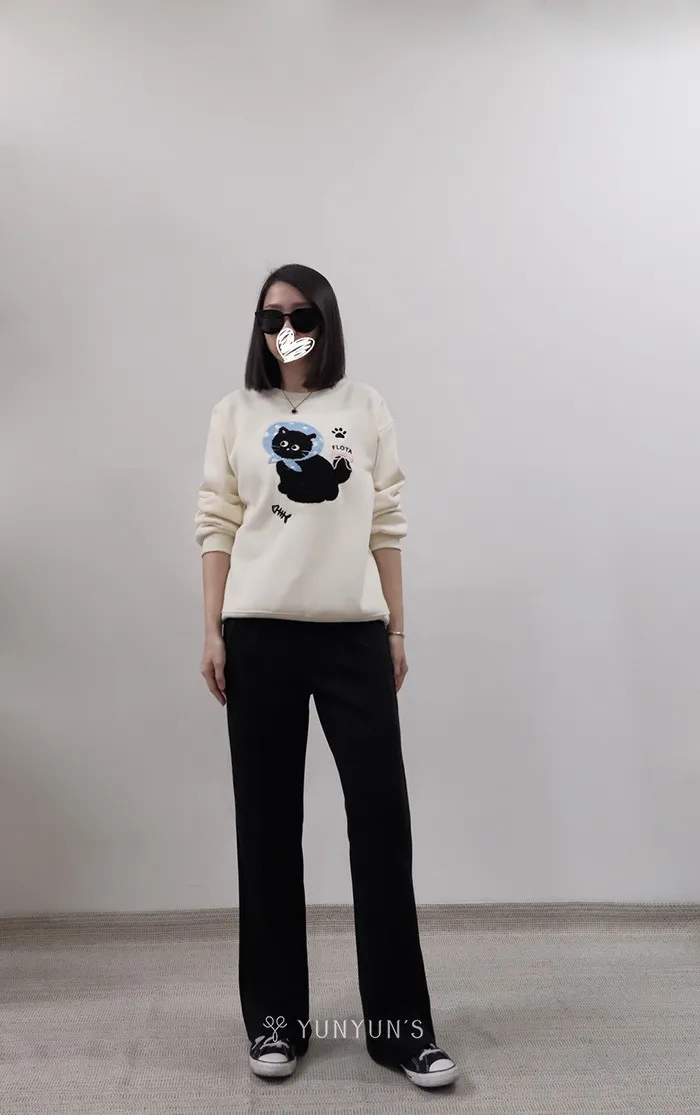 ・貓咪是立體刺繡很漂亮,內裡刷毛複合材質很舒服,空間夠寬還可以再塞打底