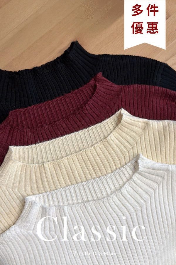 3色|YUN全新低調滾邊坑條立領打底