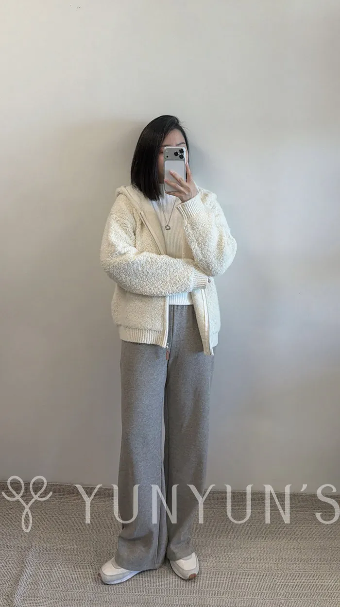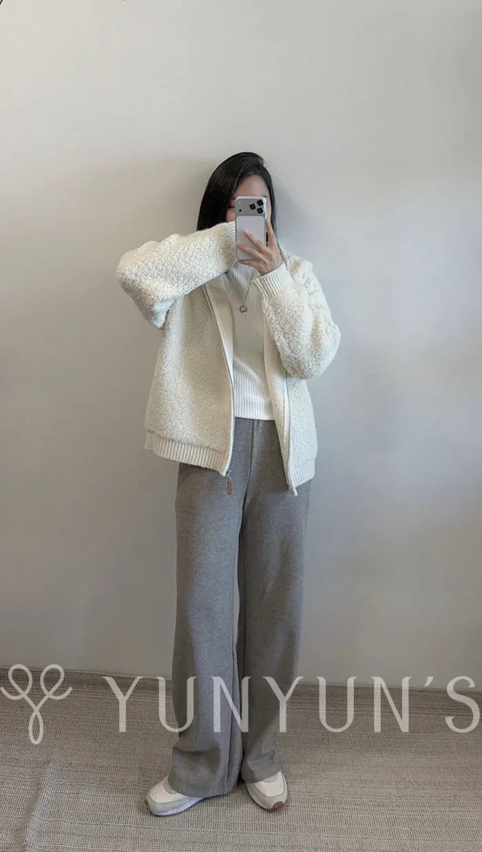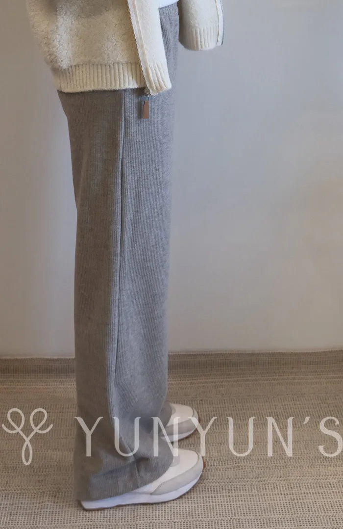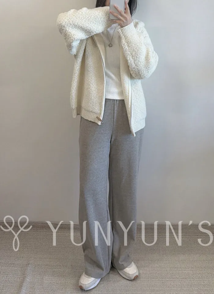 可可|YUN小銀logo舒適絨絨感口袋直筒長褲