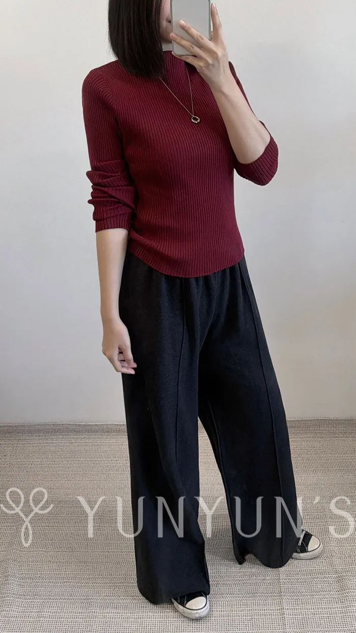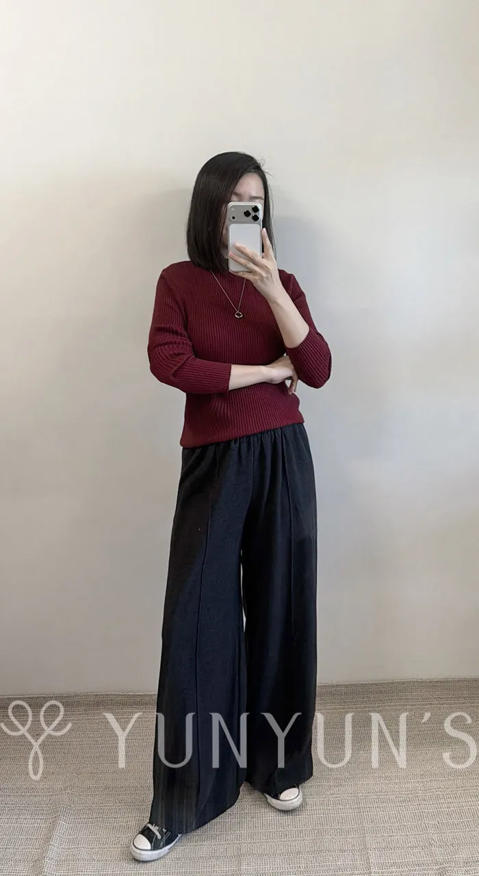 ・腰圍全鬆緊.兩側無口袋.中線直筒褲.修飾臀腿,臀寬也可以.腰圍鬆緊不會勒