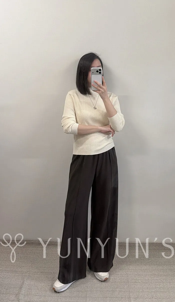 ・腰圍全鬆緊.兩側無口袋.中線直筒褲.修飾臀腿,臀寬也可以.腰圍鬆緊不會勒