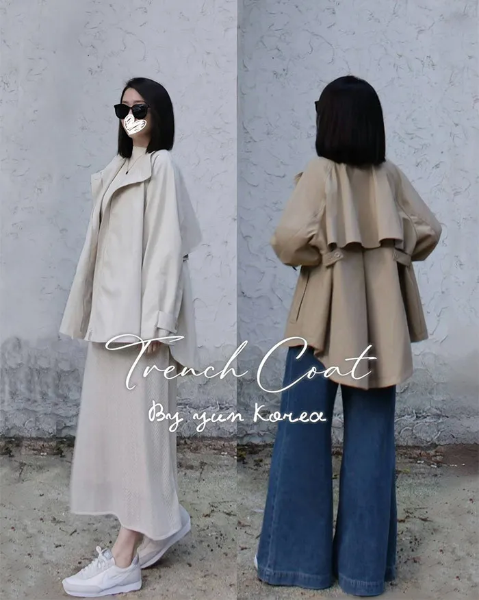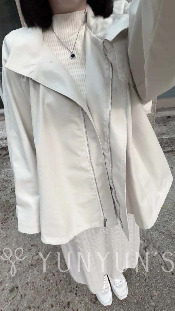 淺杏|YUN內裏拼接高工藝美背中版拉鍊風衣