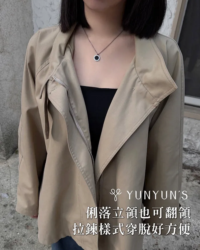 ・可立領可翻領(有固定釦)、拉鍊樣式、袖口/腰部有調節釦(免綁帶)、側面弧度很漂亮、背面細節滿分高工藝