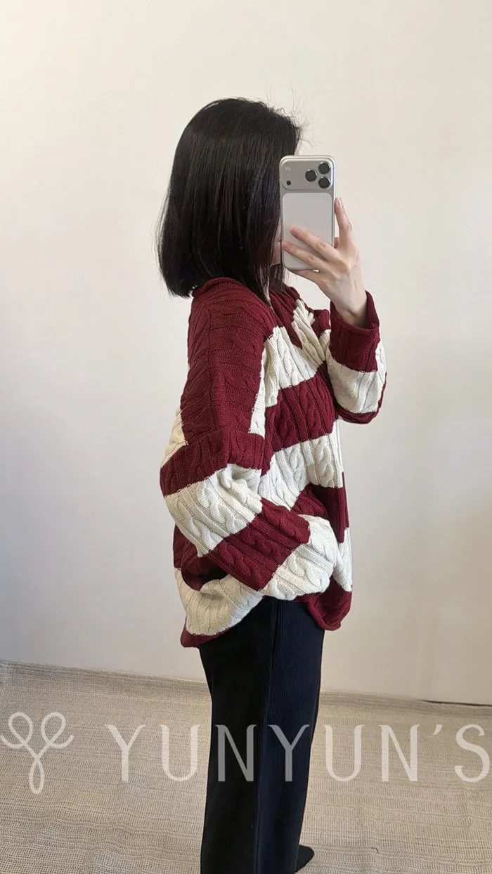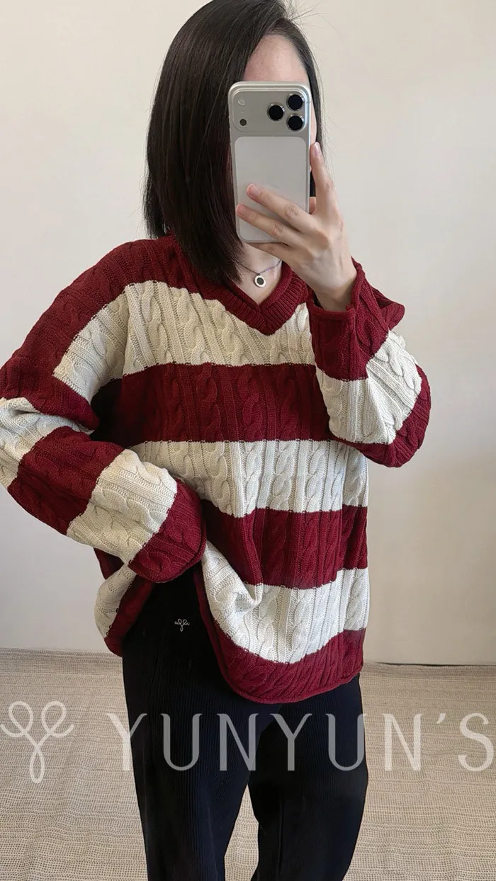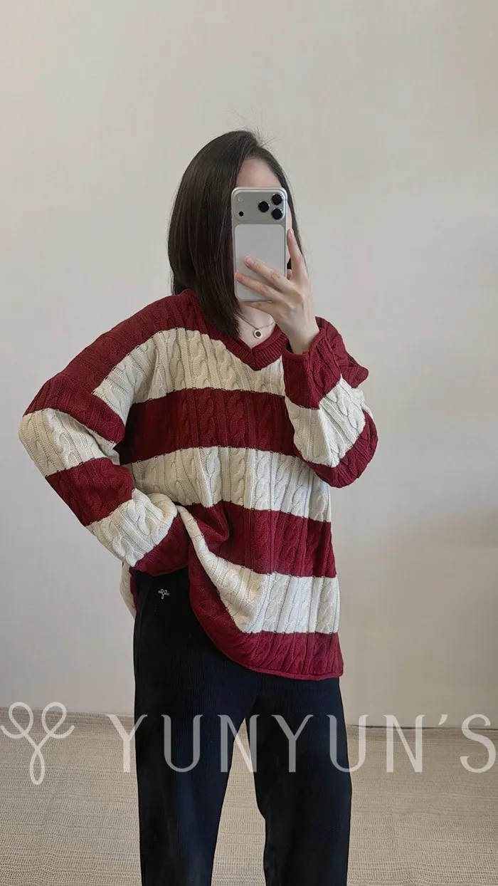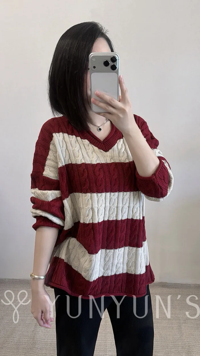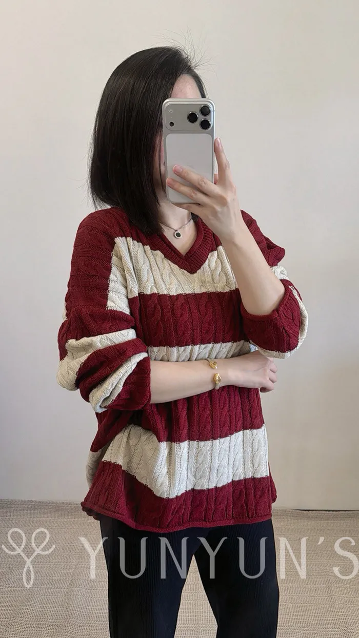 ・寬版條紋,是紅配米色(不是純白喲!很漂亮)