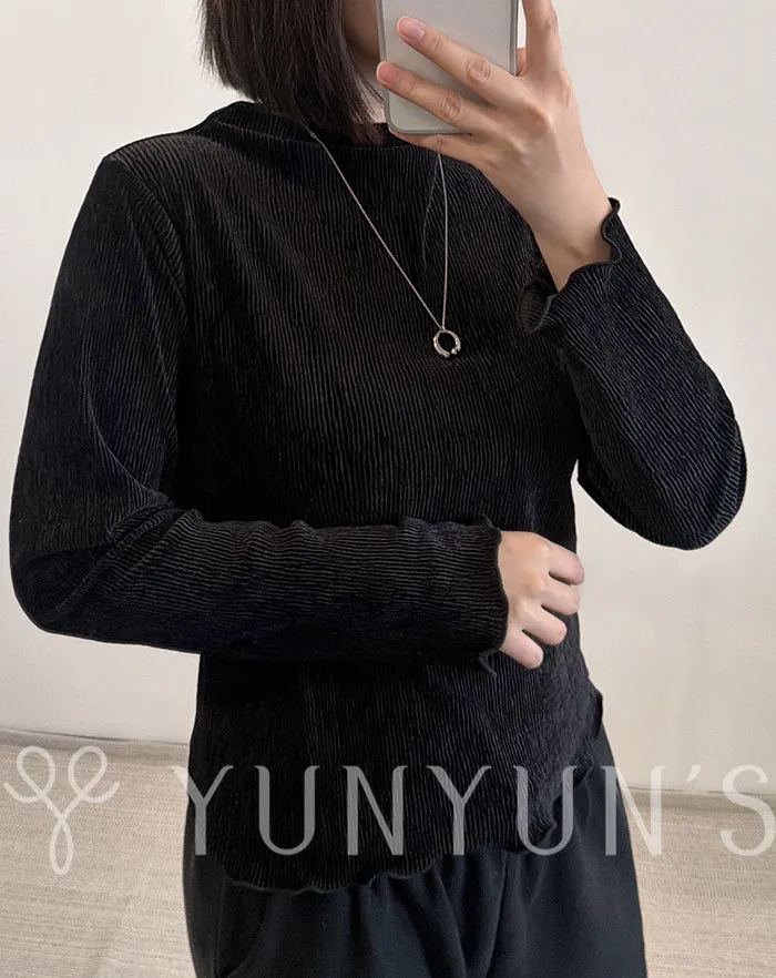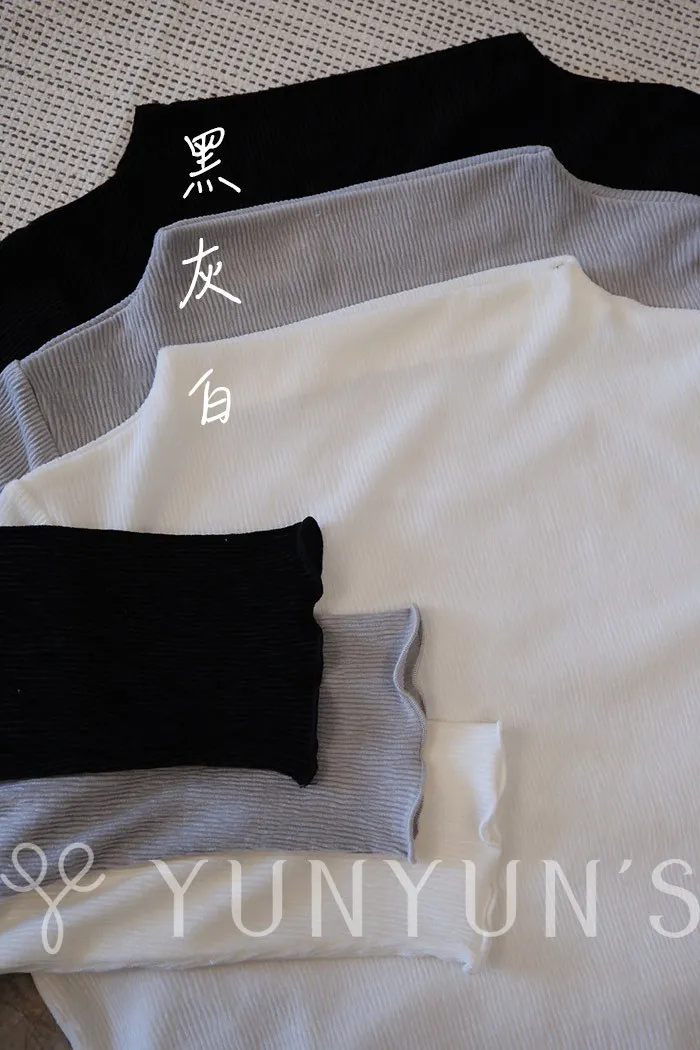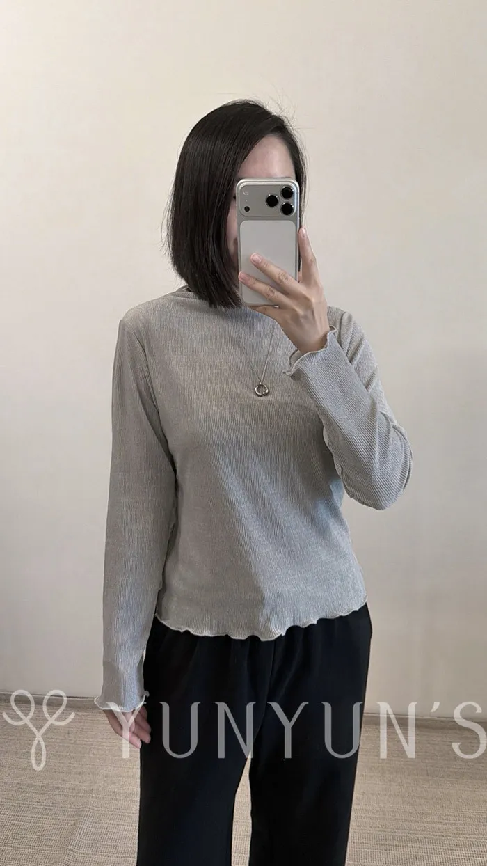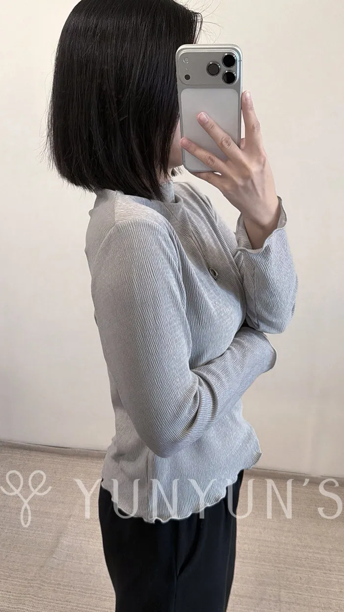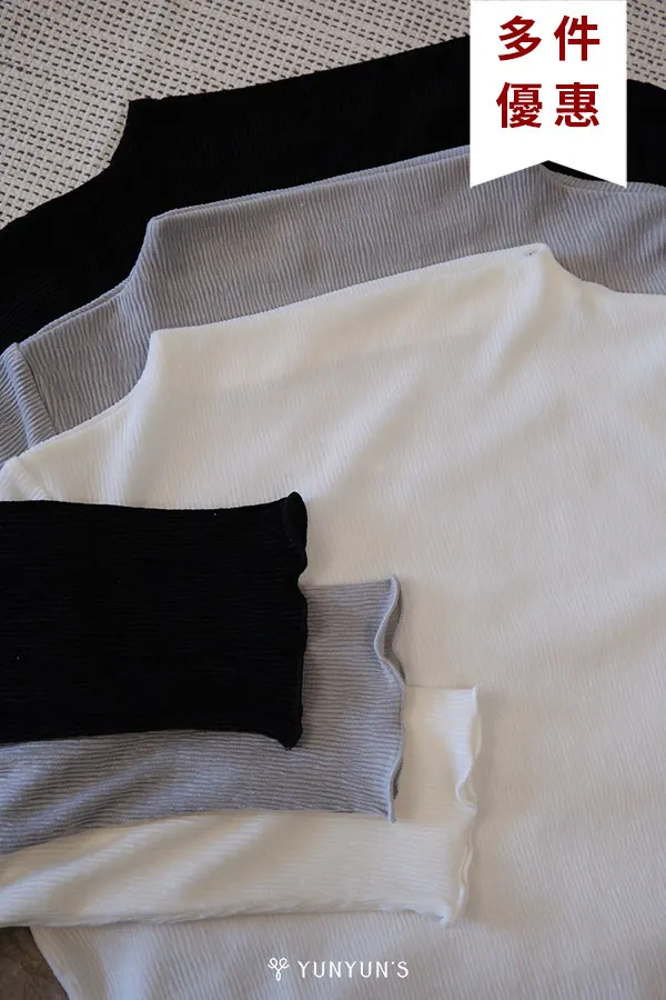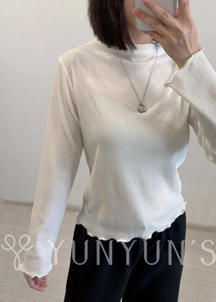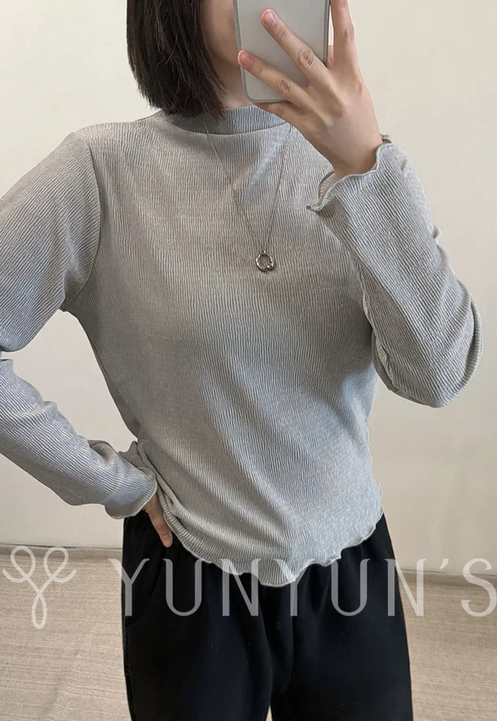 (3色)輕薄立領袖口木耳邊微光澤打底