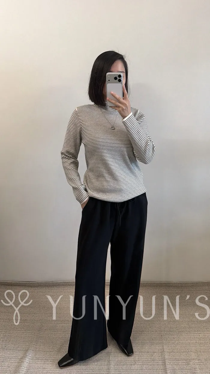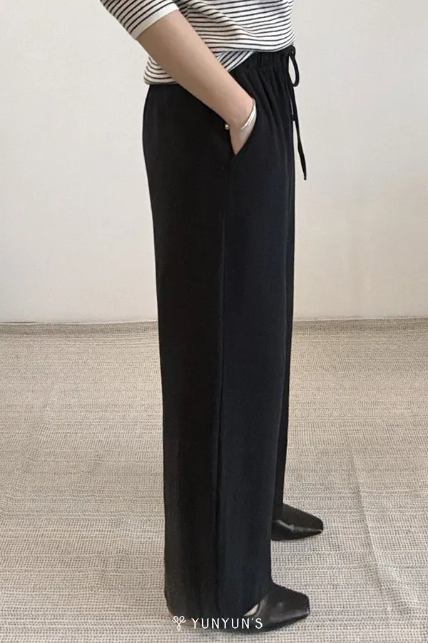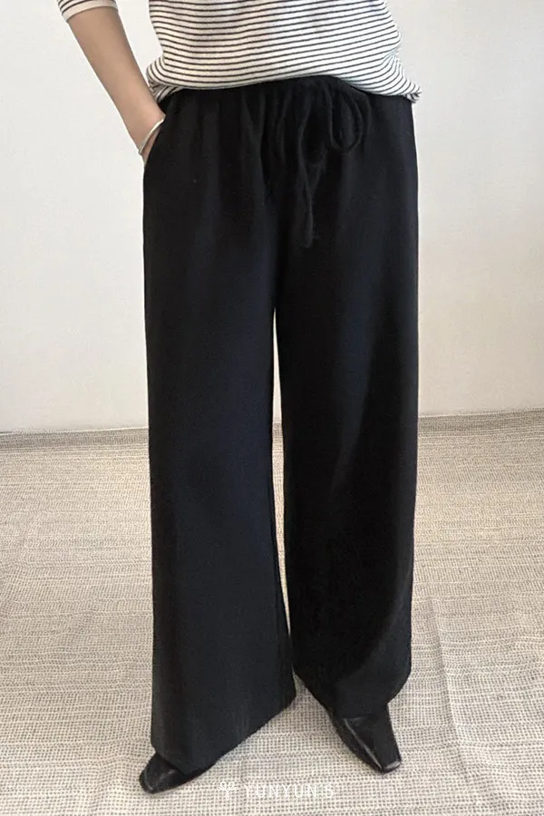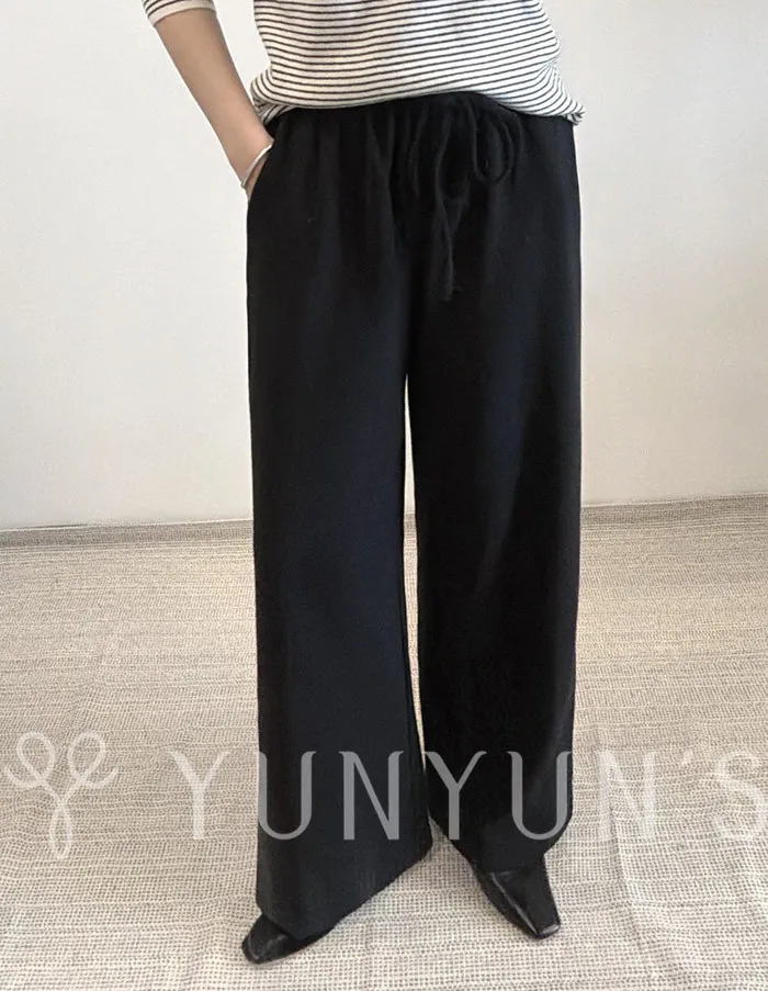 (黑)中南部冬天也能穿的 舒適抽繩寬褲