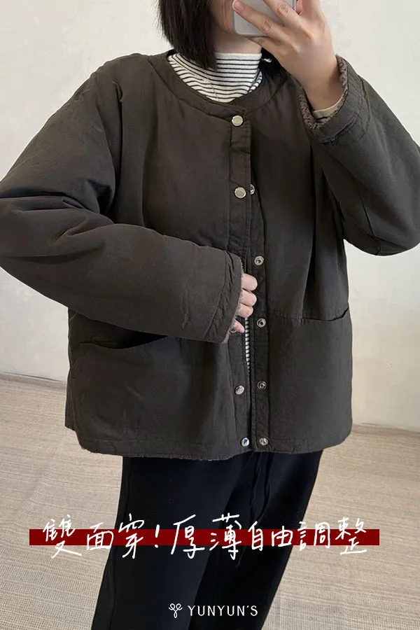 雙面都可以穿,一薄一厚自由調整、兩面【都有口袋】