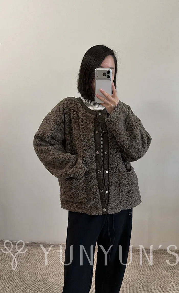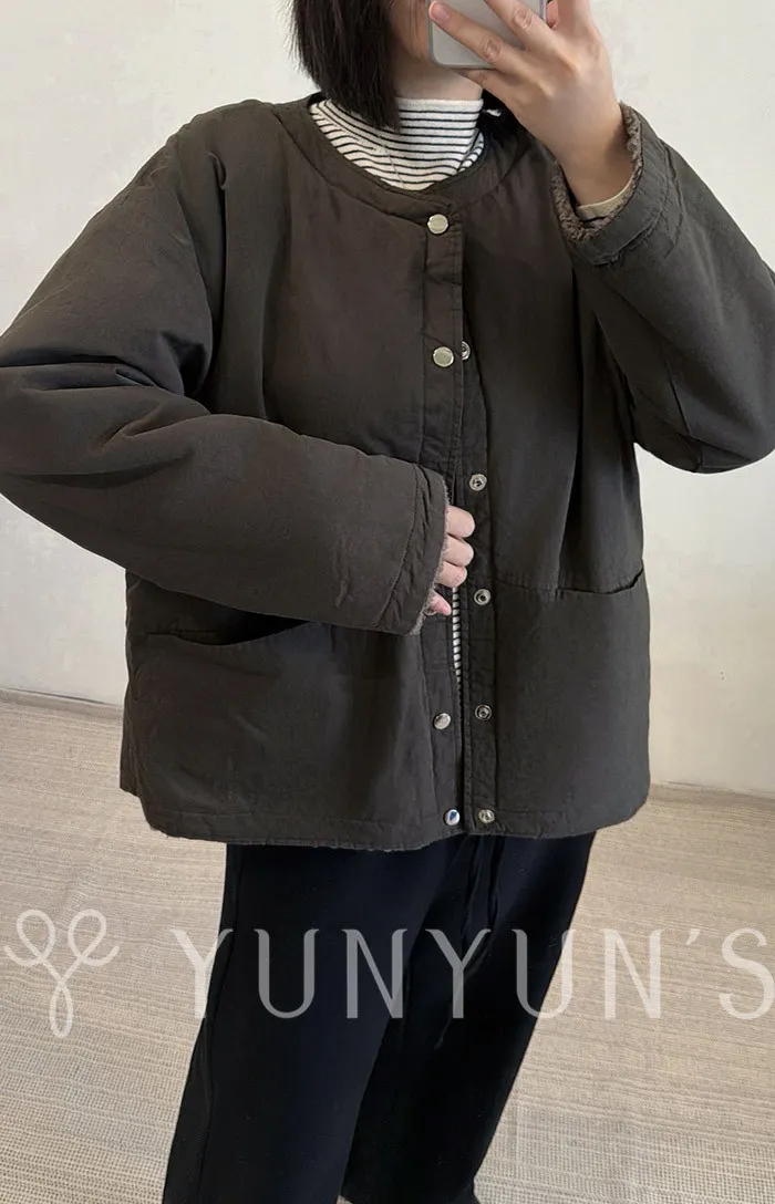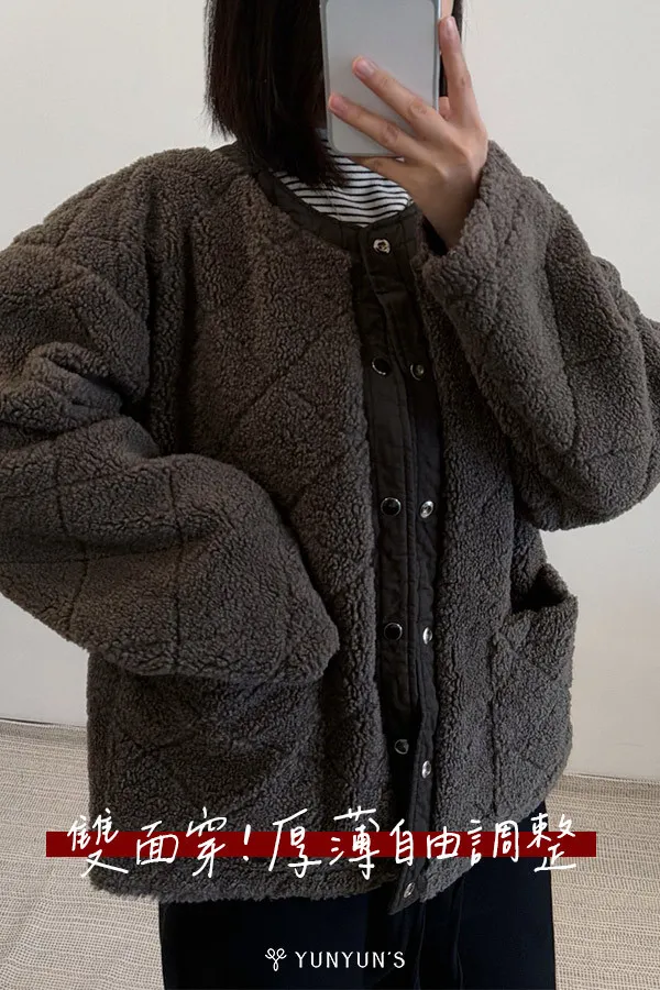 (咖灰)厚薄自由調!熊寶寶口袋雙面外套