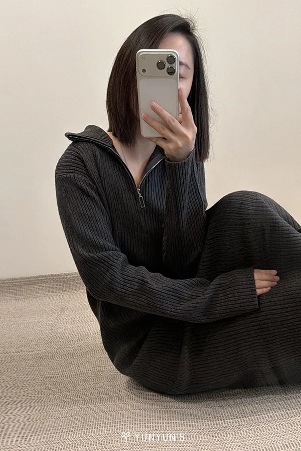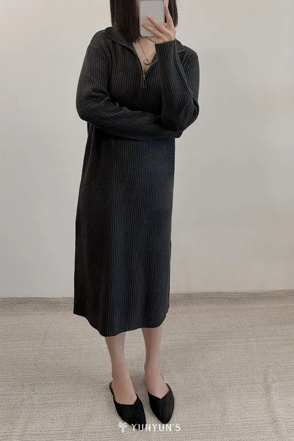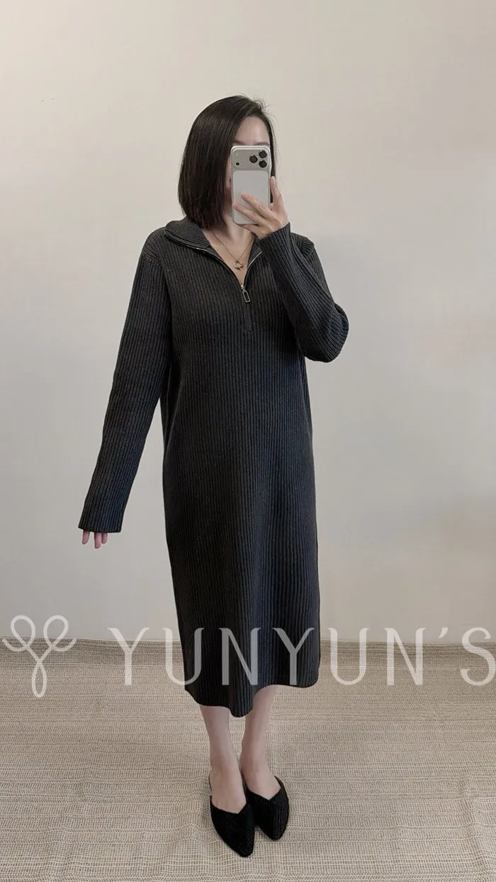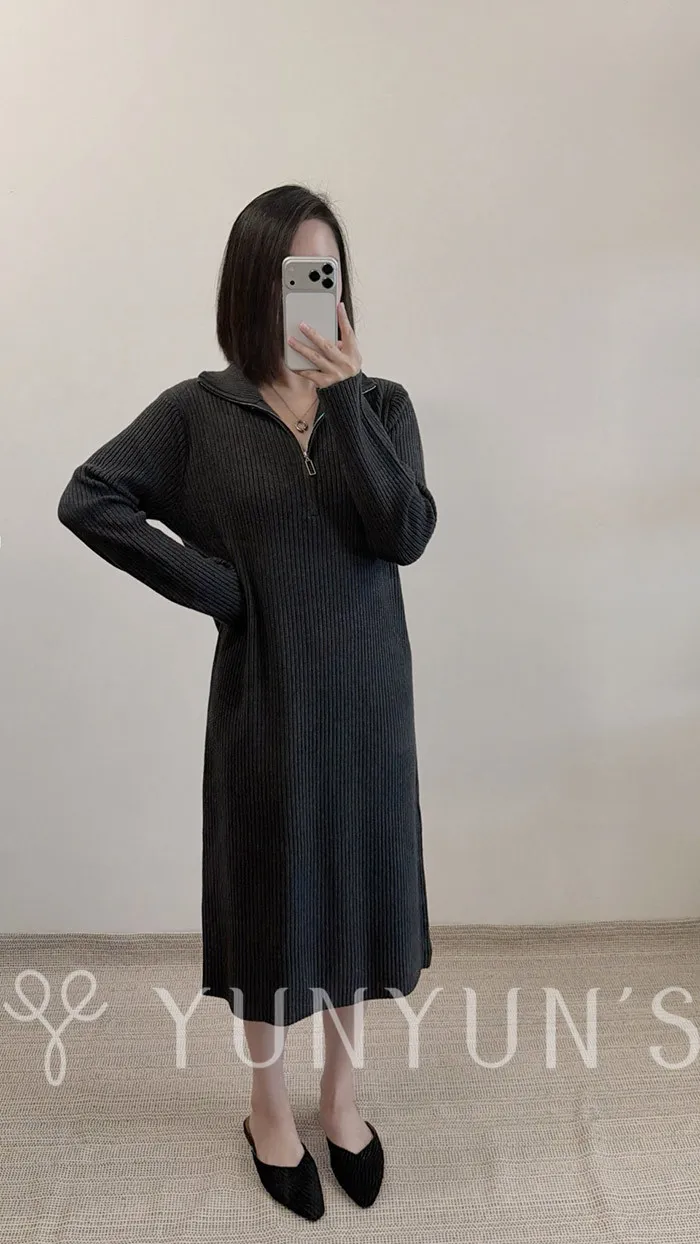 (深灰)嬌小推薦!親膚磅數感拉鍊針織洋