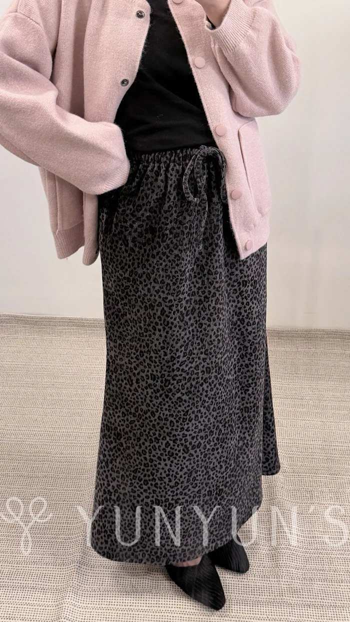 YUN不貼臀超好穿內絨感低調豹紋長裙
