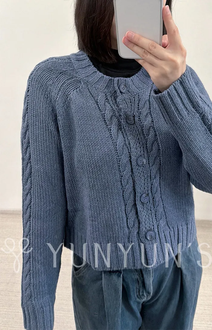 ・側邊微微的麻花很漂亮,素面又帶點特色!排釦有搭配衣服的顏色,開春都還可以穿