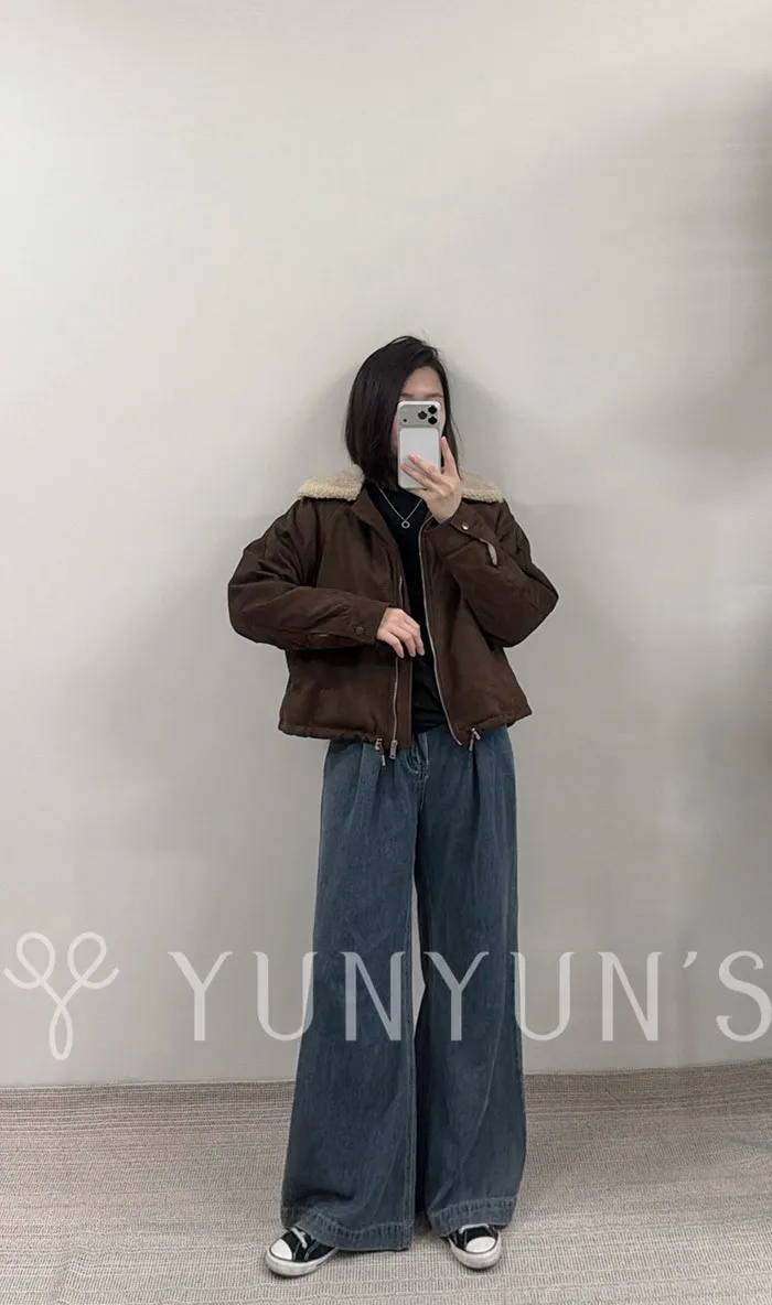 ・拉鍊樣式.兩側有口袋、整件都有絨毛很舒服,下擺有抽繩可收緊變成蓬鬆下擺的感覺