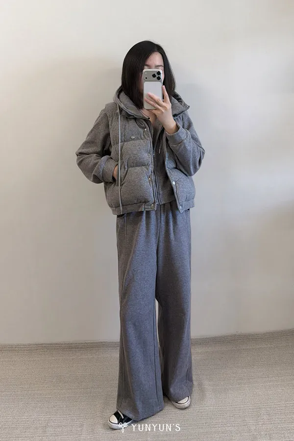 ・三件組不拆售:褲子+連帽外套+鋪棉背心