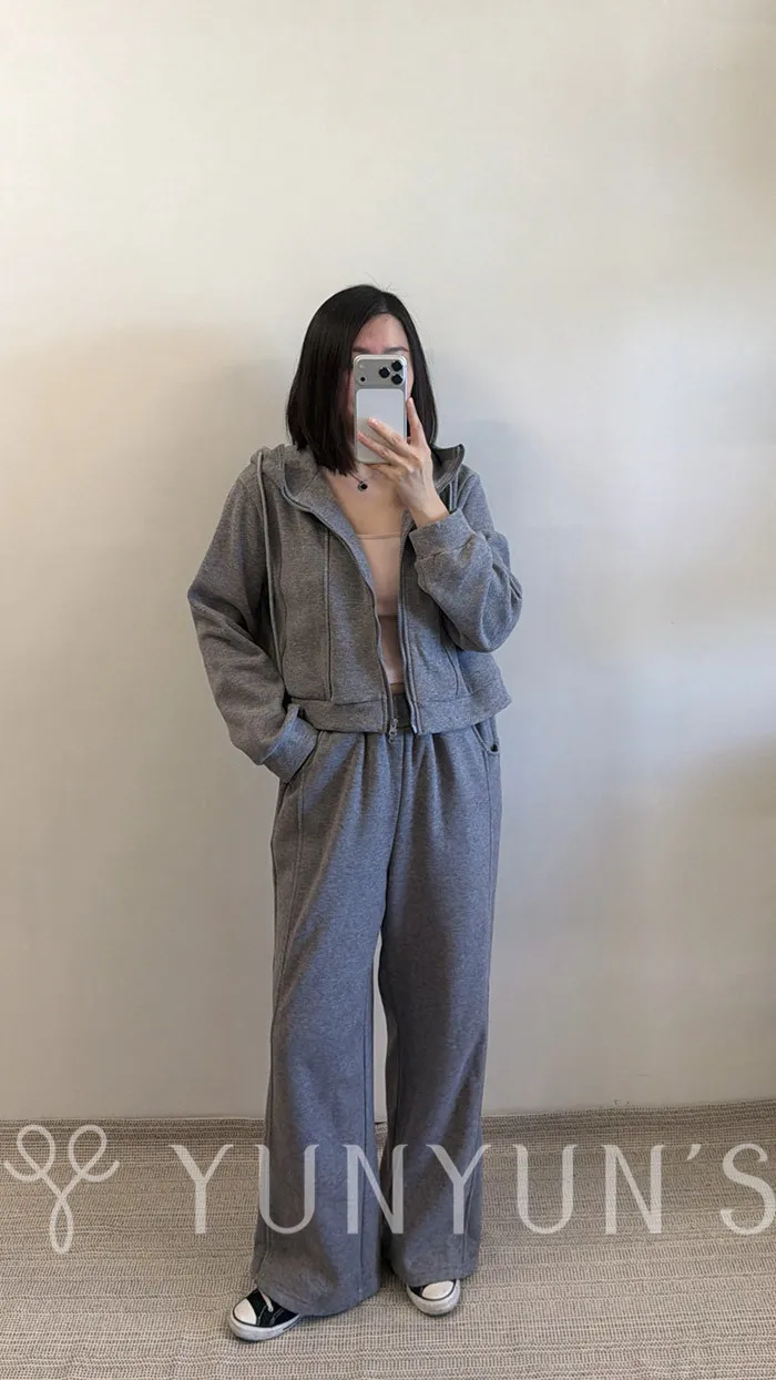 ・外套雙拉鍊(沒有口袋)、褲子腰圍全鬆緊(兩側有口袋)臀寬也可以穿